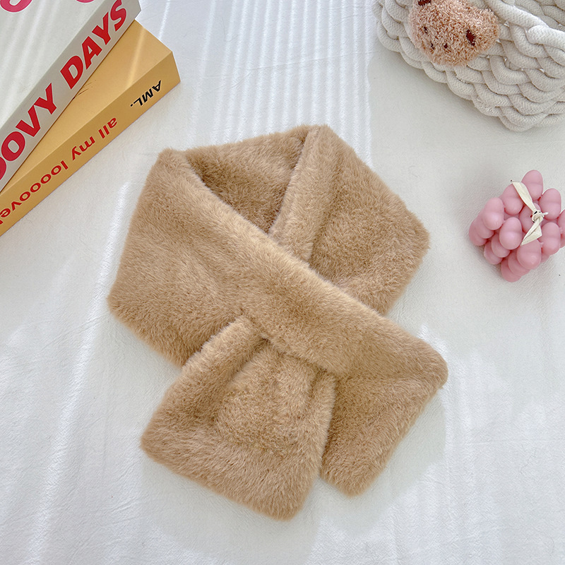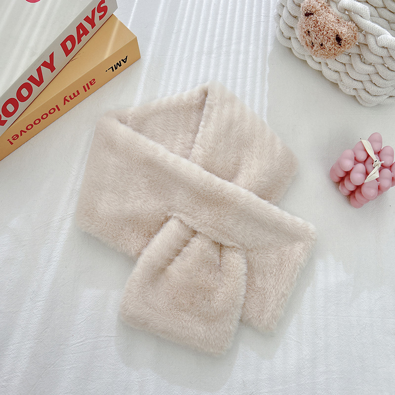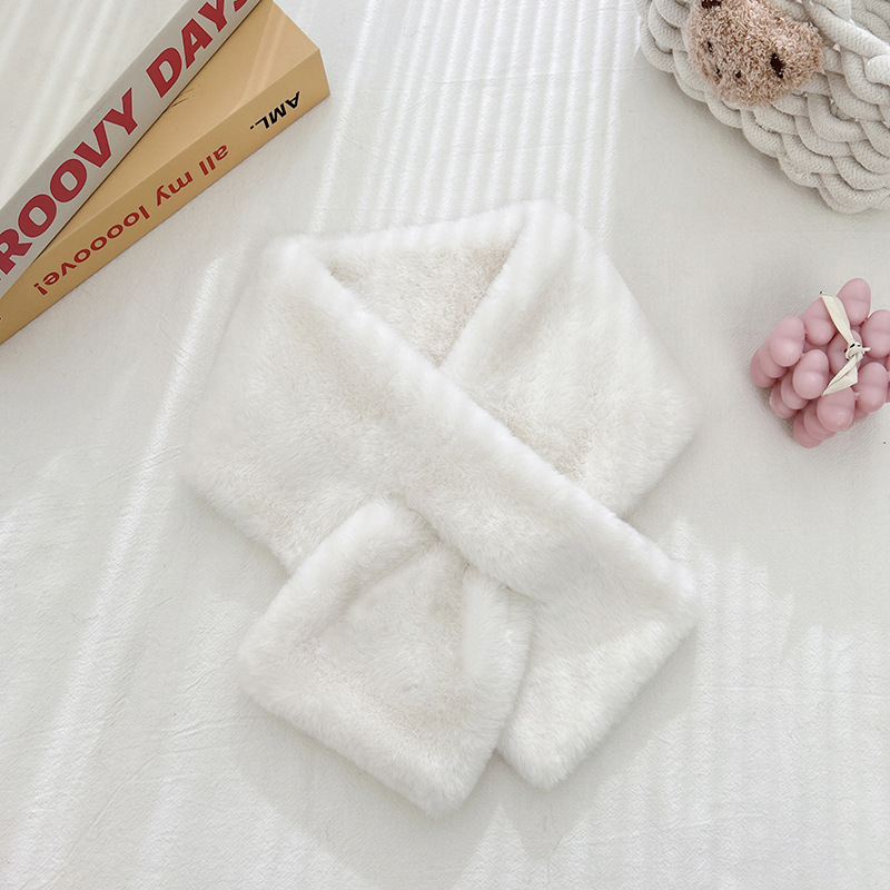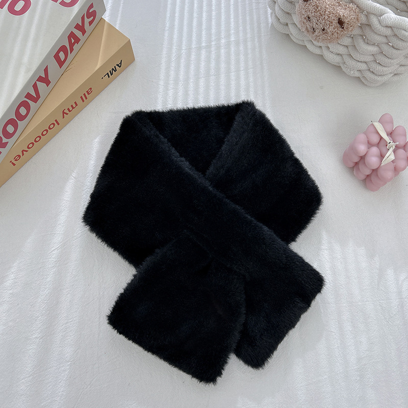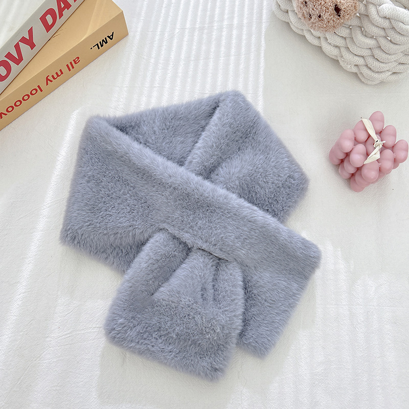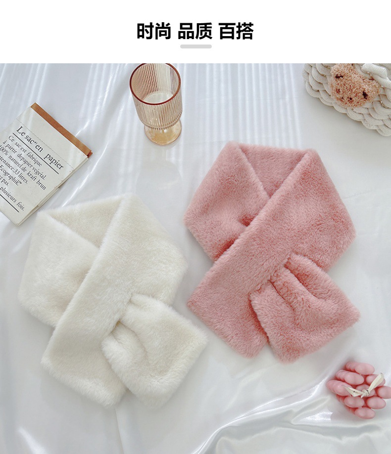 단색 봉제 여성의 겨울 목 보호 스카프 한국식 귀여운 학생 모조 토끼 고급 두꺼운 따뜻한 작은 스카프