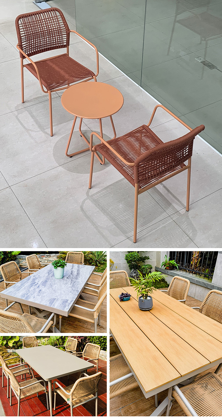 맞춤형 카페 레저 야외 테이블과 의자, 빌라 안뜰 등나무 식탁과 의자, 야외 밀크티 가게 야외 등나무 의자스토어 가기