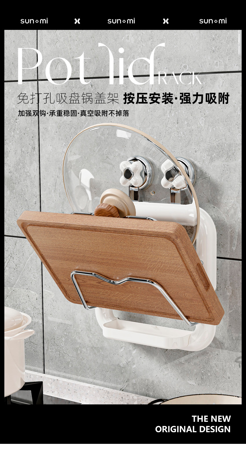 펀치없는 주방 도마 가정용 강력한 빨판 냄비 커버 랙 커팅 보드 벽걸이 형 냄비 커버 스토리지 랙