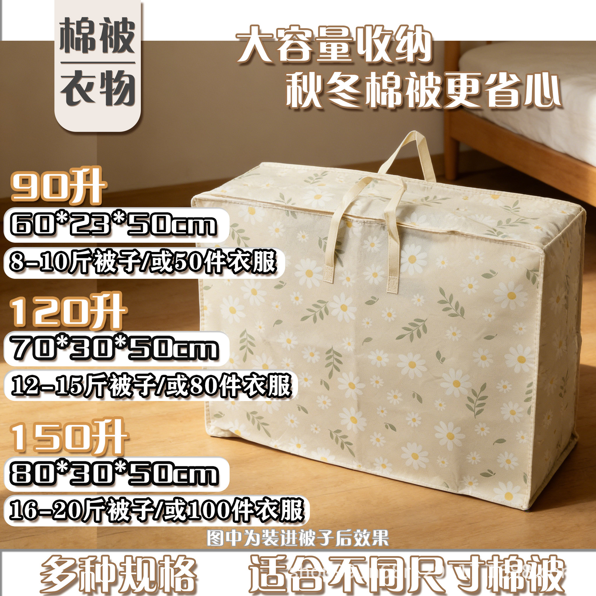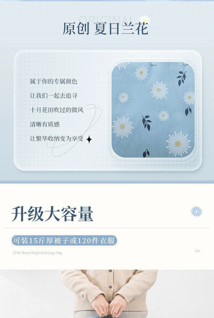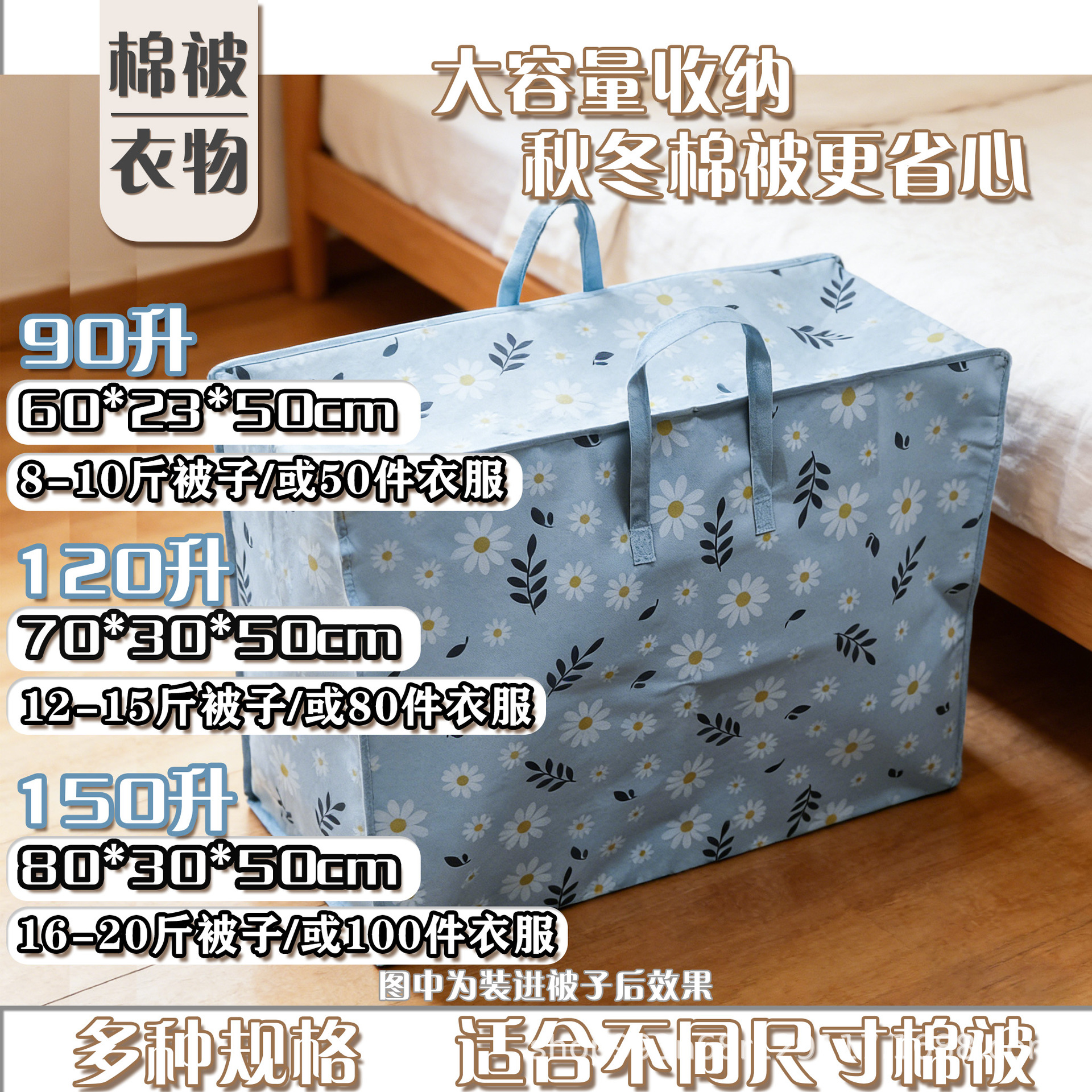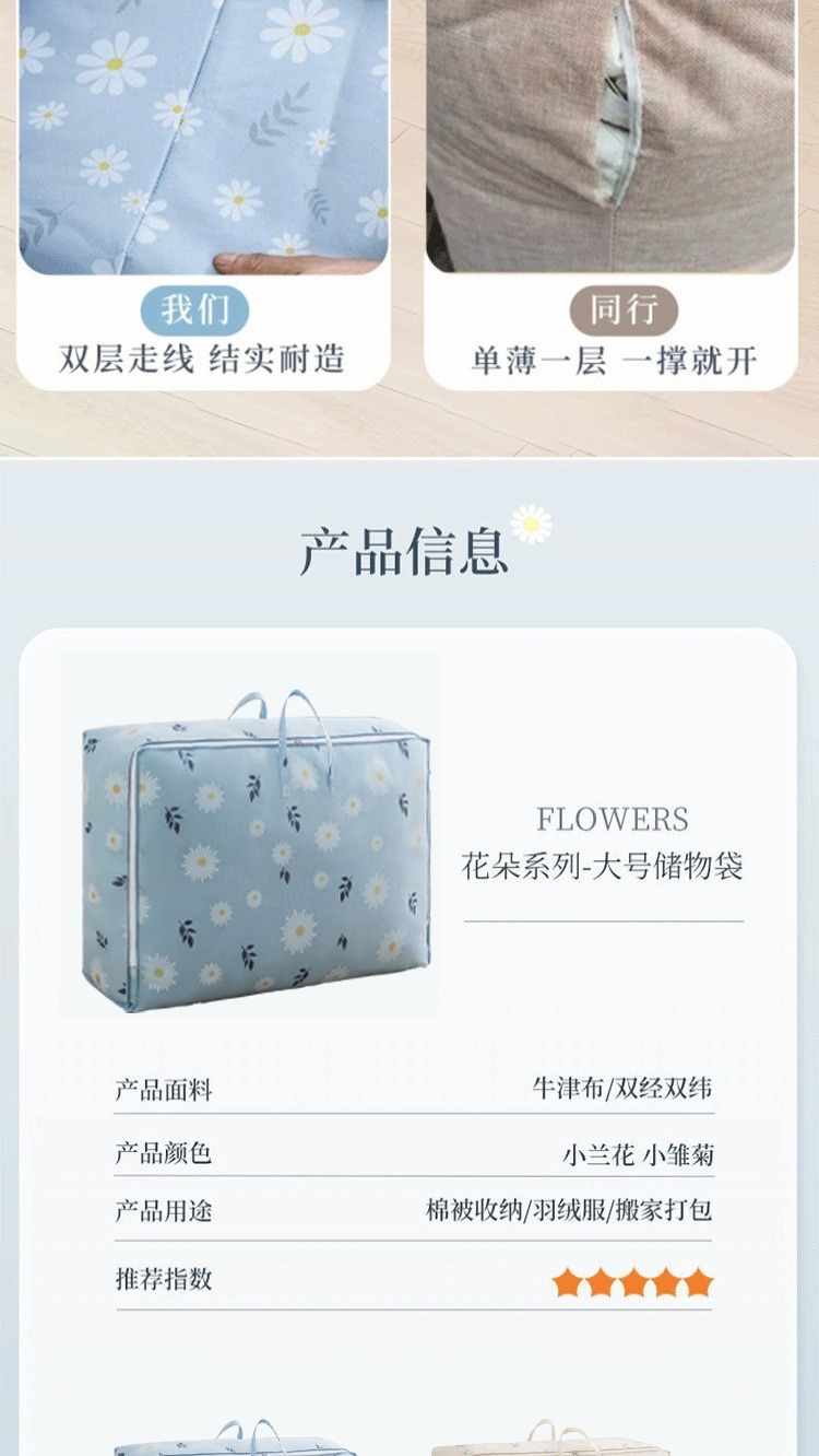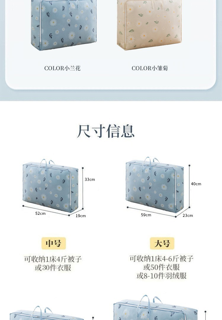 데이지 퀼트 저장 가방 빅 맥 대용량 의류 퀼트 핏 백 방수 및 방진 두꺼운 보관 바구니스토어 가기