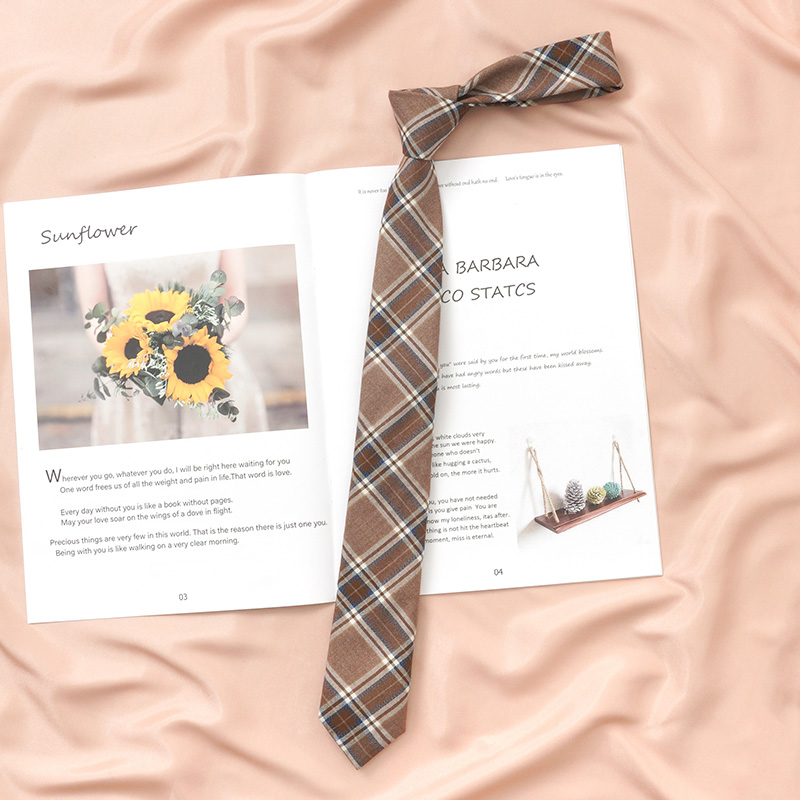 격자 무늬 커피 다크 브라운 JK 타이 블라우스 일본 대학 스타일 학생 유니폼 핸즈프리 DK 남성 빈티지 액세서리스토어 가기