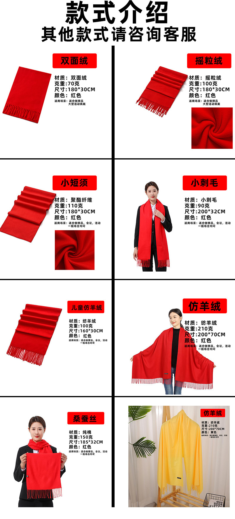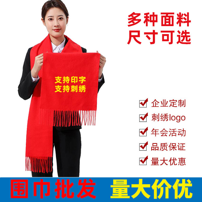 중국 빨간 스카프 도매 사용자 정의 로고 수 놓은 노란색 스카프 오프닝 연례 회의 스카프 회의 인쇄