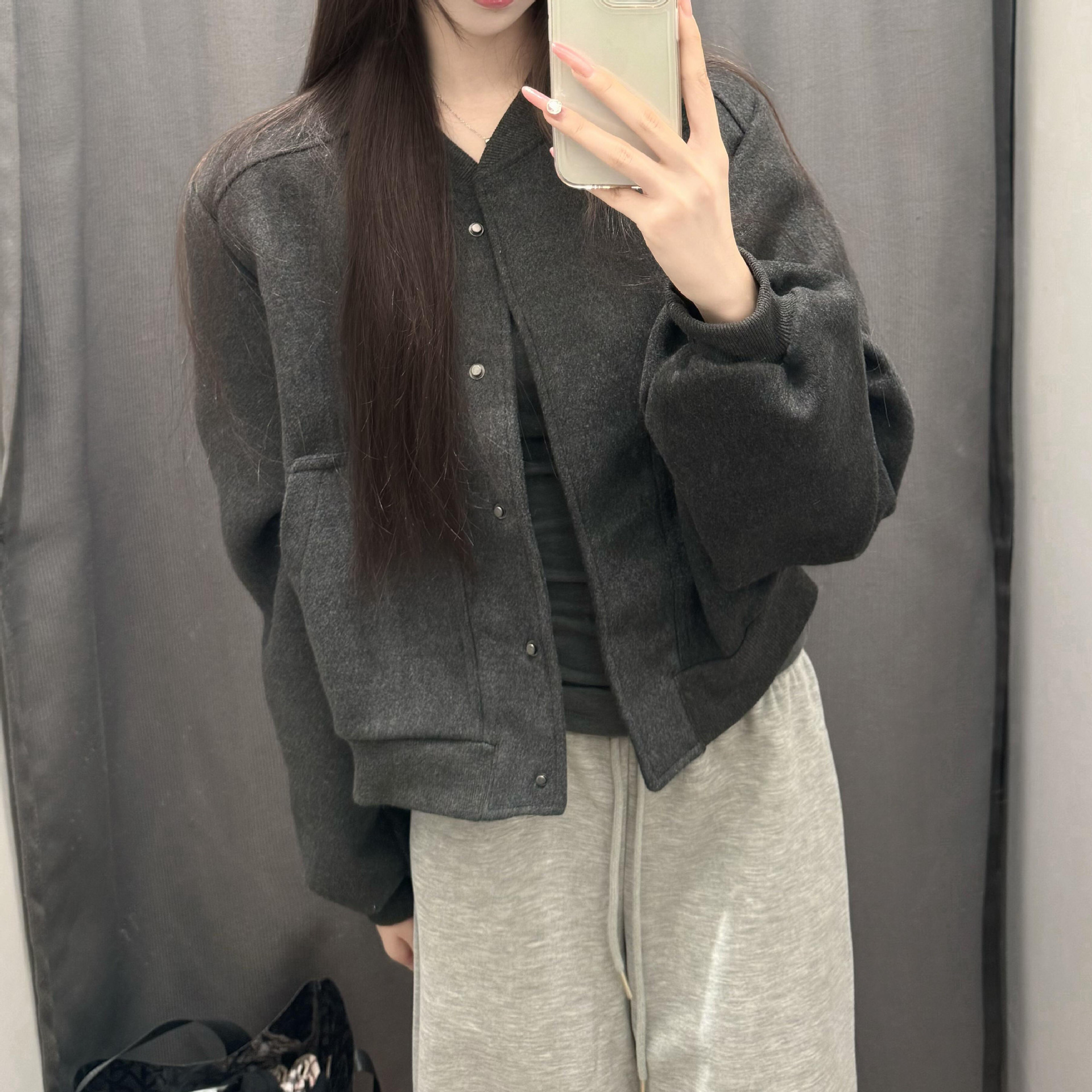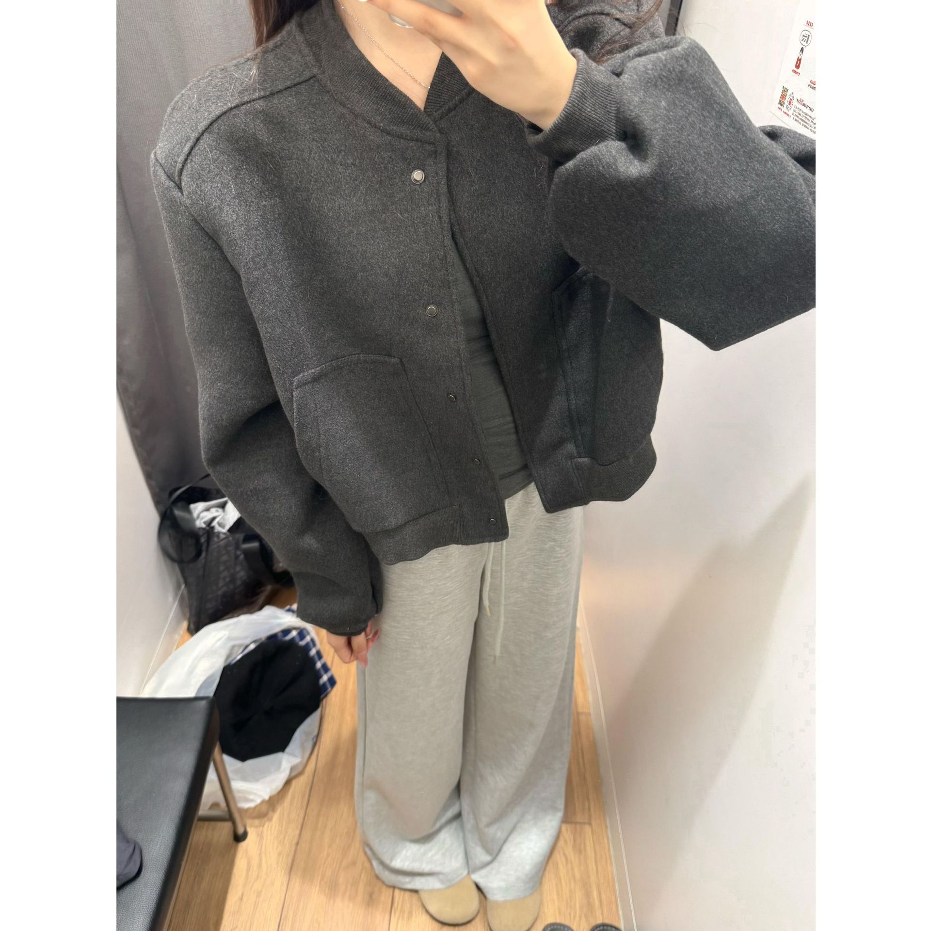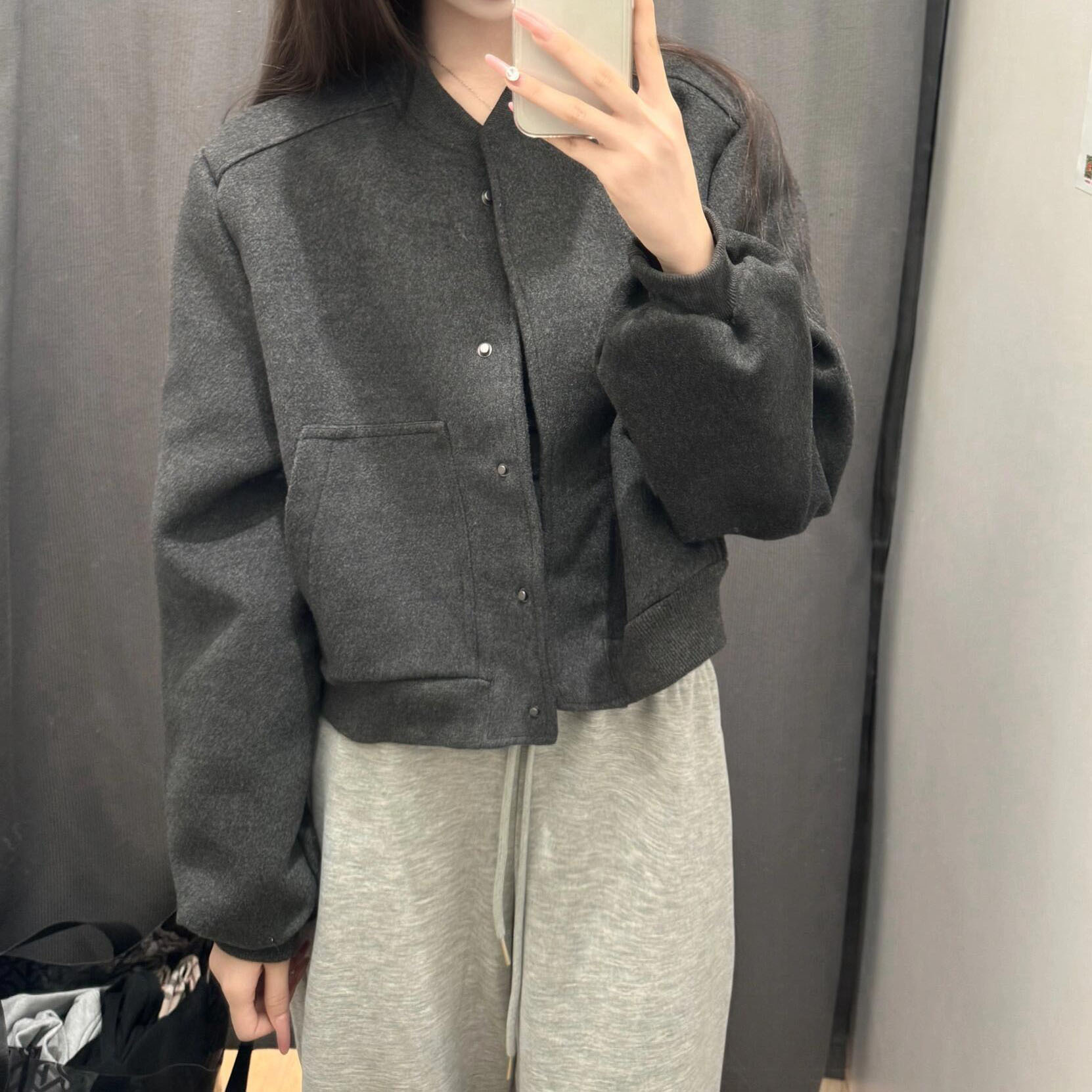 빈티지 그레이 짧은 야구 세트 코트 여자 가을 새로운 도착 느슨한 우아한 재킷 긴 소매 탑스토어 가기