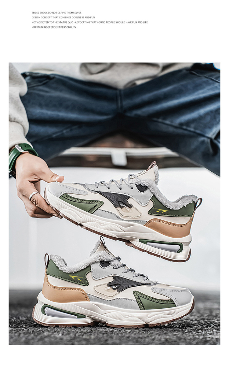 겨울 남자 신발 새로운 기모 운동화 남자 트렌디 올매치 두꺼운 두꺼운 두꺼운 코튼 신발 토레를위한 트렌디 신발