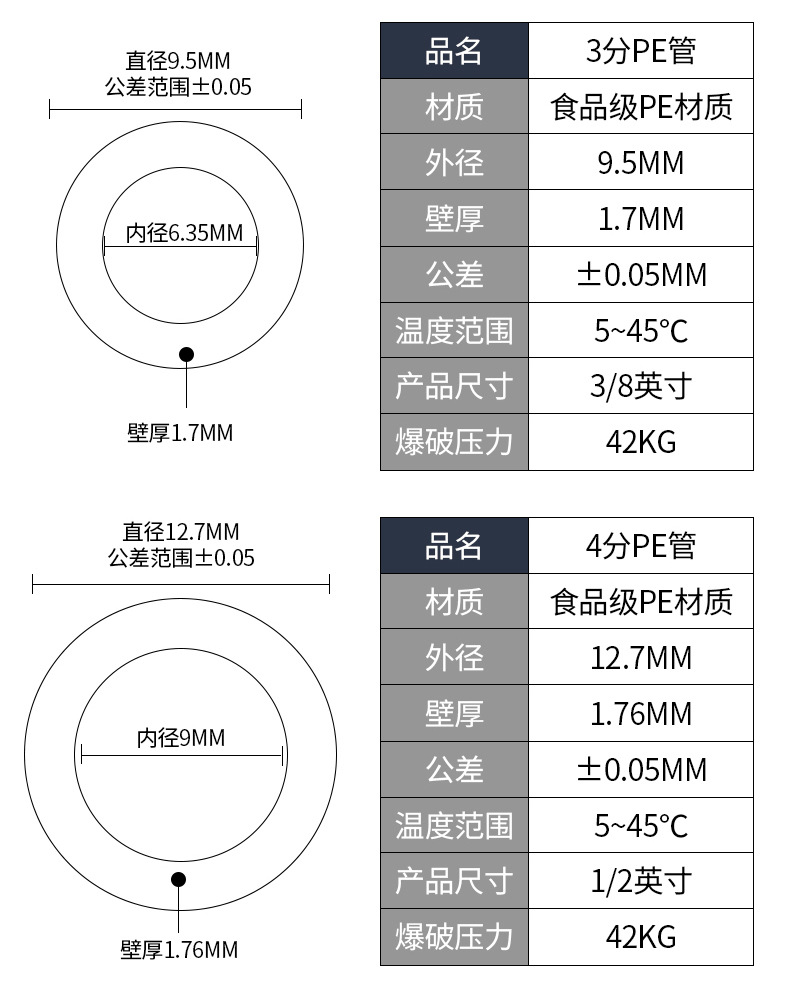 정수기 2 점 3 점 PE 파이프 가정용 주방 RO 역삼 투 순수 정수기 식품 등급 호스 직접 마시는 액세서리