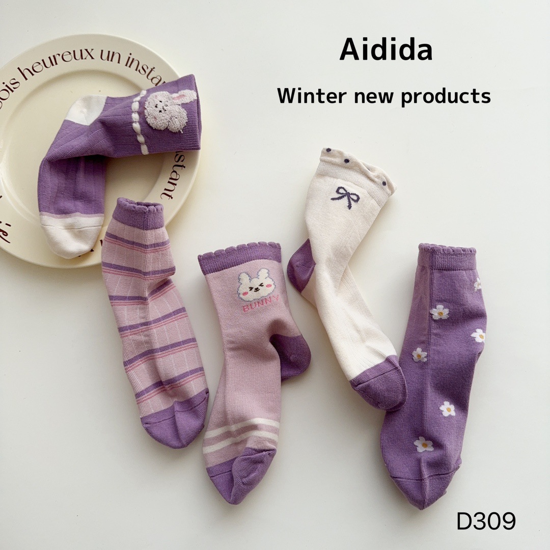 사랑의 진드기 어린이 양말 가을과 겨울 새로운 만화 토끼 소녀 튜브 양말이 통기성 땀 흡수성 학생 양말을 빗어