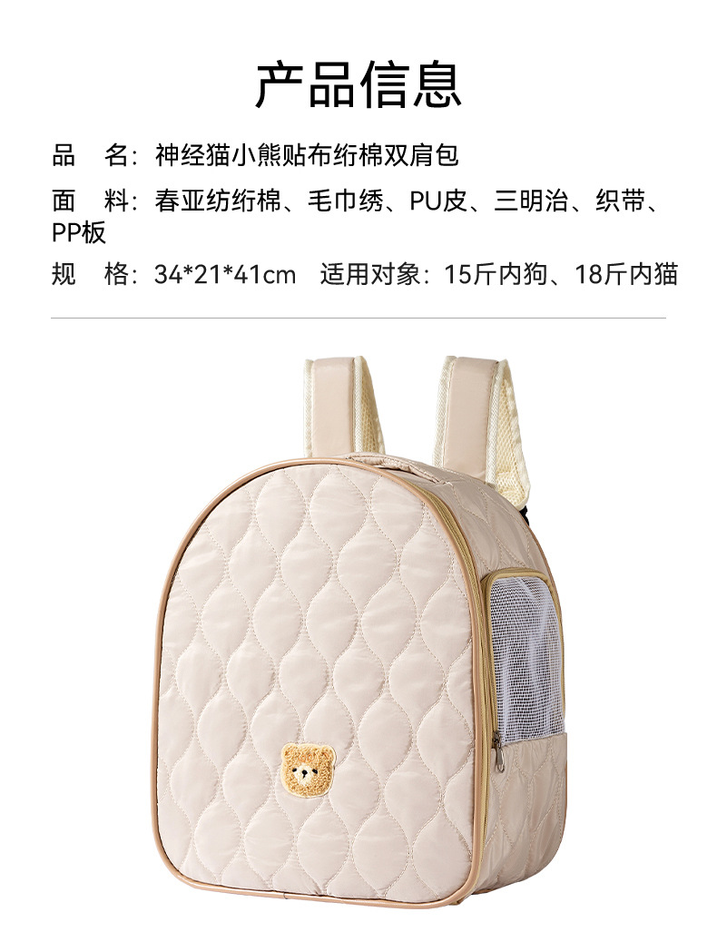 가을과 겨울 나가는 가방 퀼트 코튼 따뜻한 배낭 여행 대용량 배낭 개 휴대용 고양이 가방 안티 스트레스 고양이 케이지스토어 가기