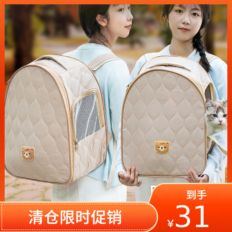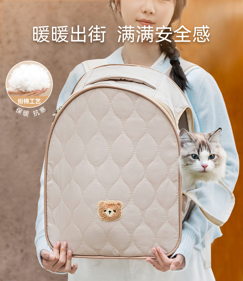 가을과 겨울 나가는 가방 퀼트 코튼 따뜻한 배낭 여행 대용량 배낭 개 휴대용 고양이 가방 안티 스트레스 고양이 케이지