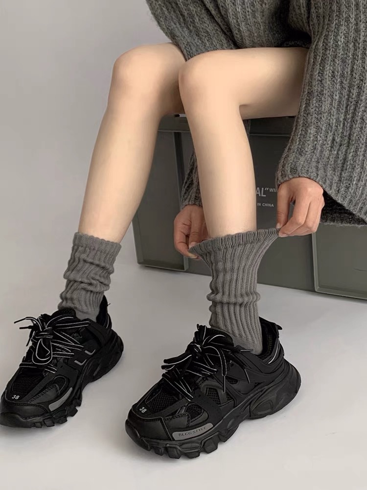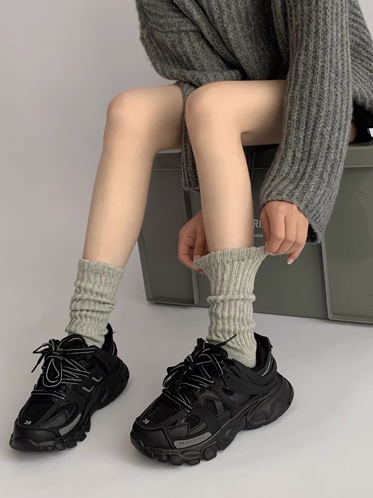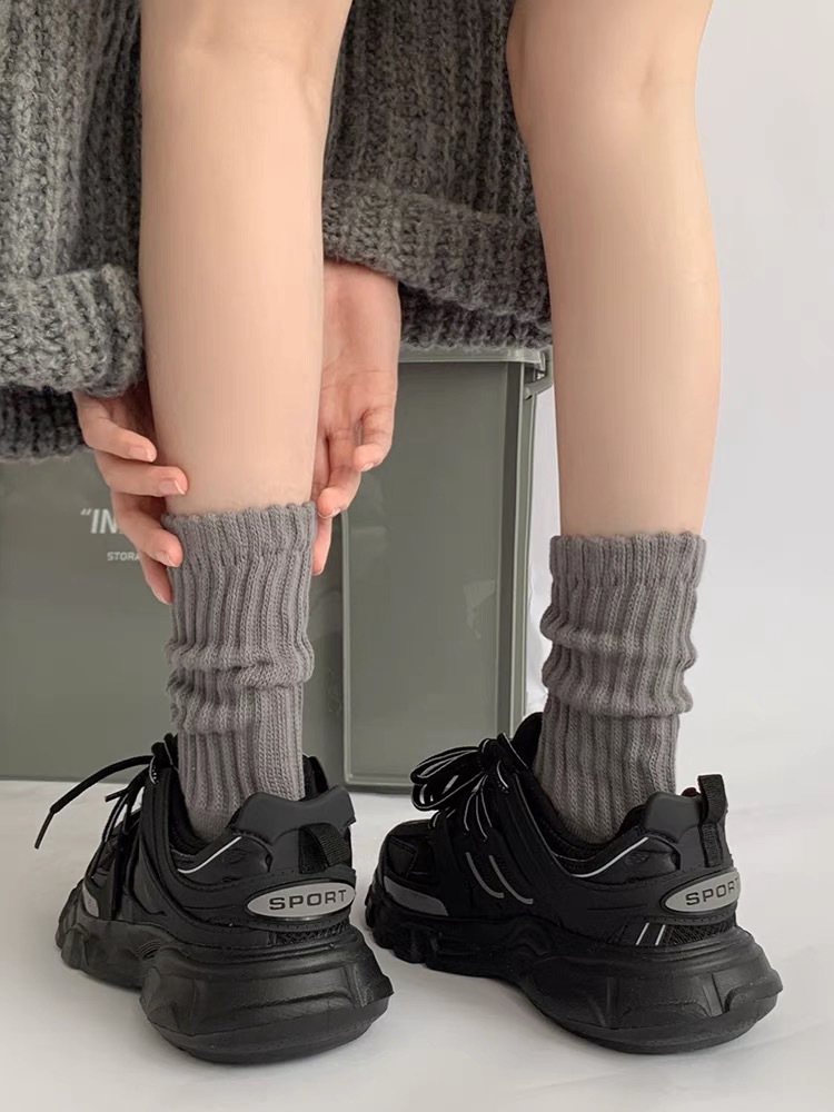 [두꺼운 따뜻한 테리] 탈취제 땀 흡수성 면 양말 소녀 더미 양말 긴 튜브 문 양말 가을과 겨울