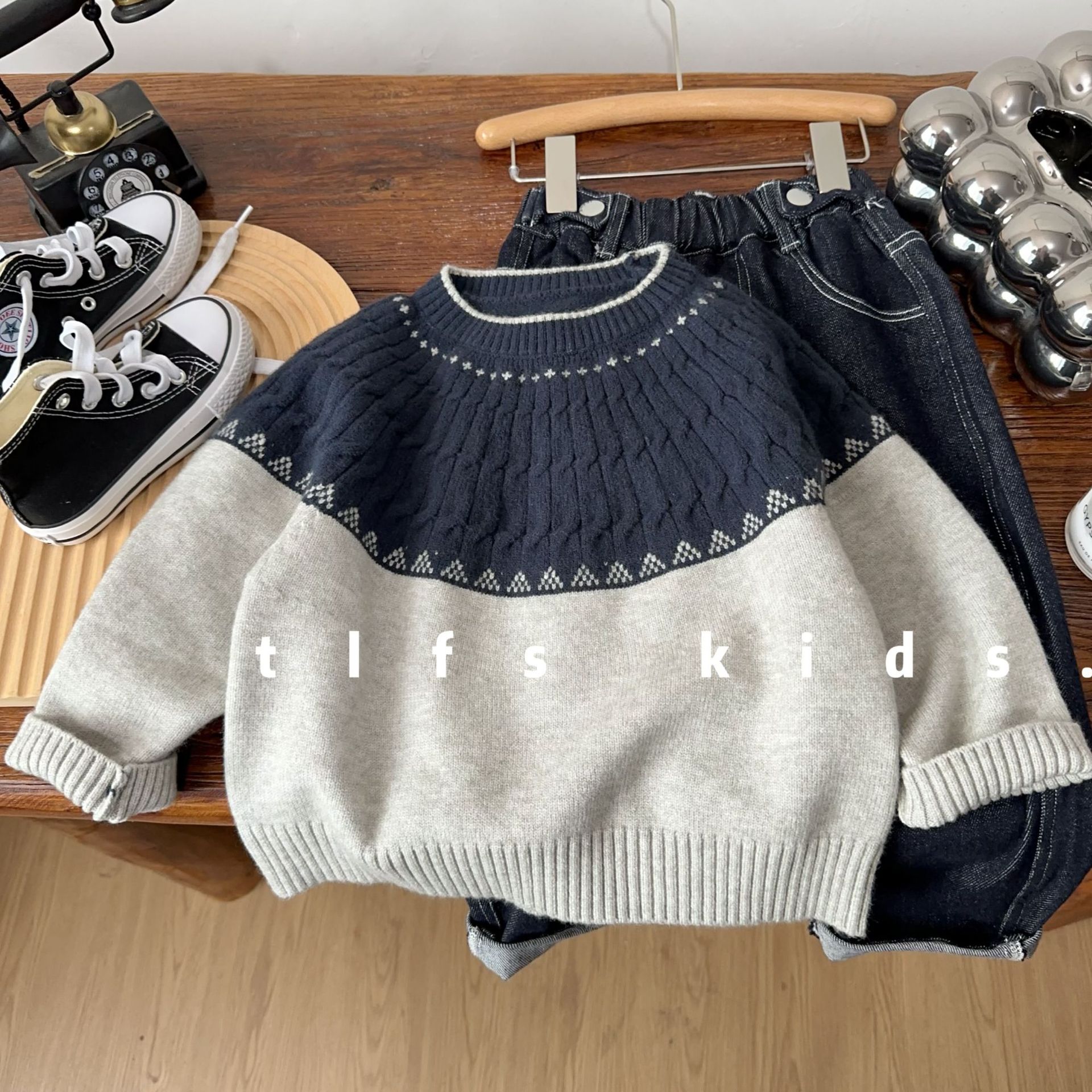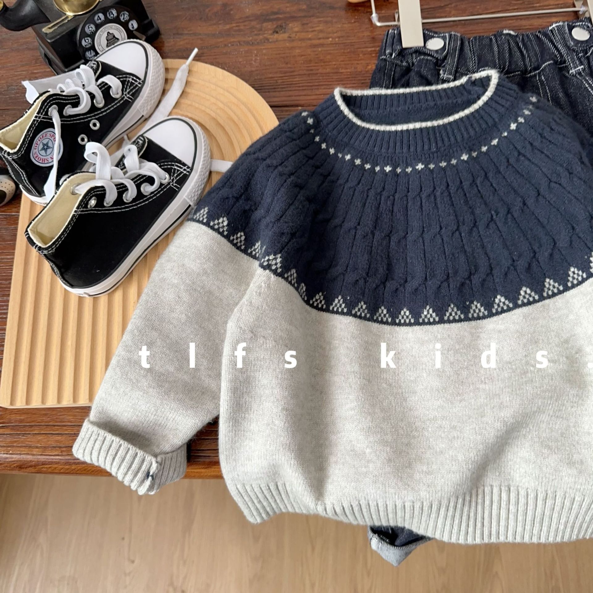 어린이 티베트어 회색 대마 꽃 칼라 스웨터 가을과 겨울 새로운 피부 친화적 인 캐주얼 소프트 왁스 스웨터 소년 소녀를위한 올 매치 트렌디스토어 가기