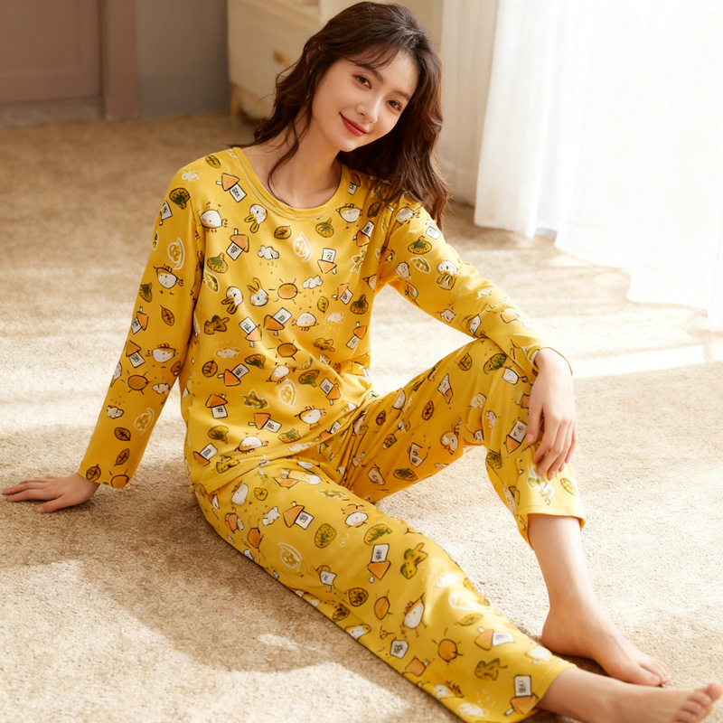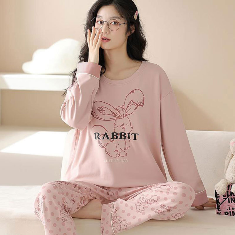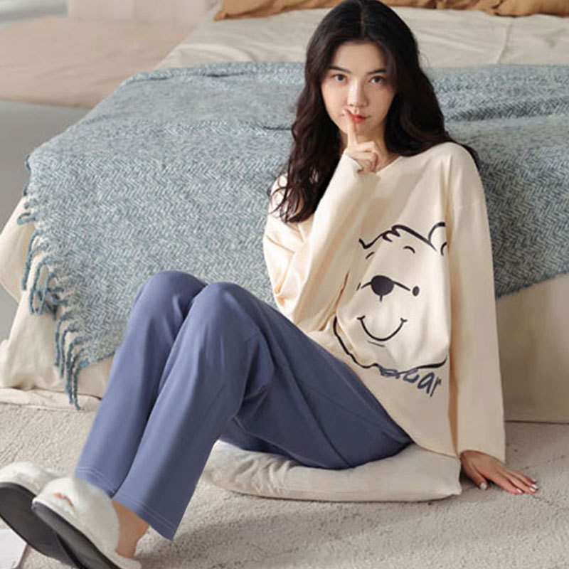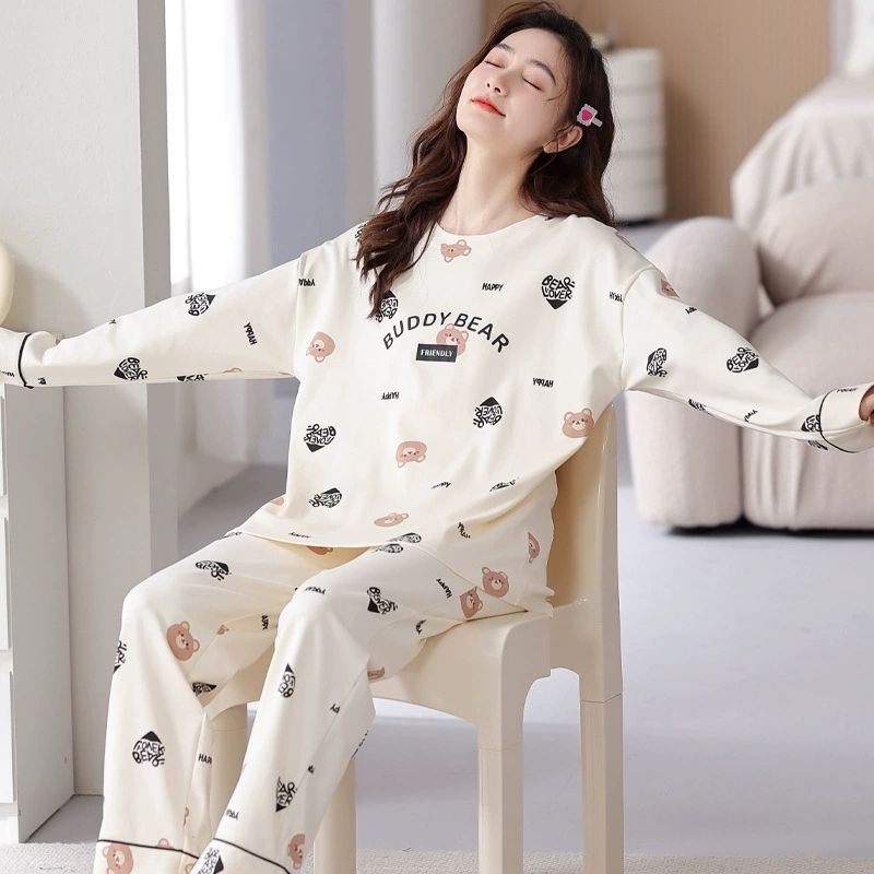 가을 겨울 만화 무지개 곰 신상 잠옷 여성용 긴팔 긴바지 외출 가능 루즈핏 여성 홈웨어 세트 얇은 소재스토어 가기