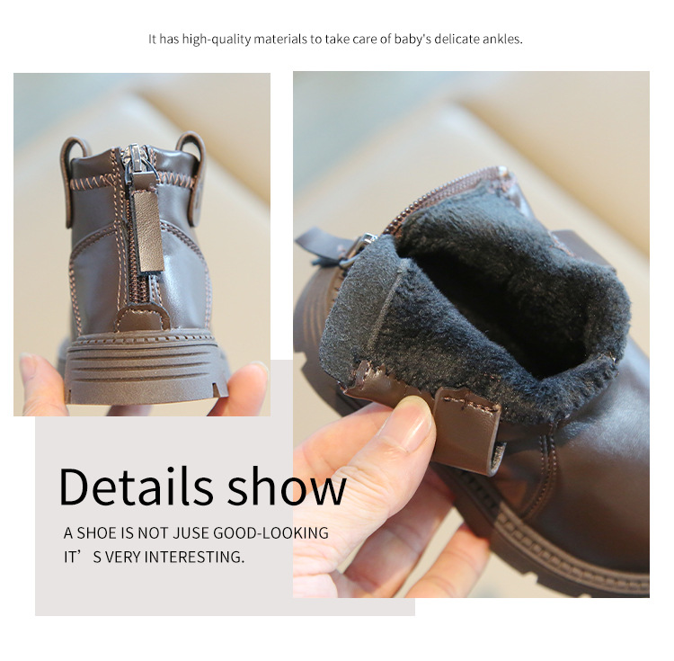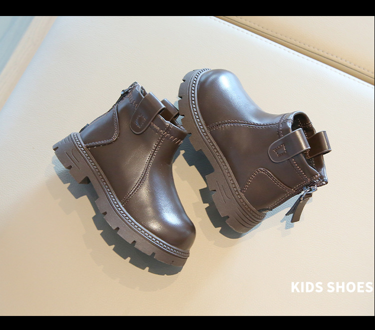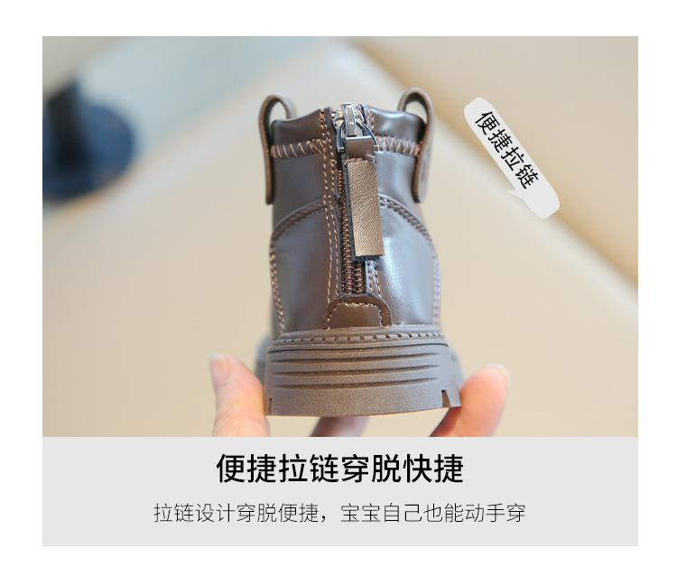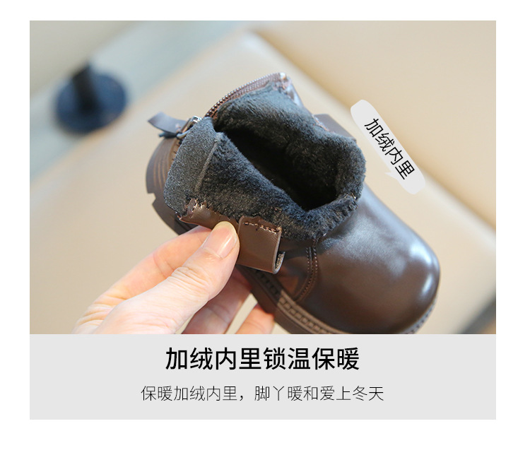 소녀 코튼 신발 단색 짧은 부츠 2024 가을 새로운 작은 중간 어린이 등 지퍼 코튼 부츠 아기 영국 스타일 부츠스토어 가기