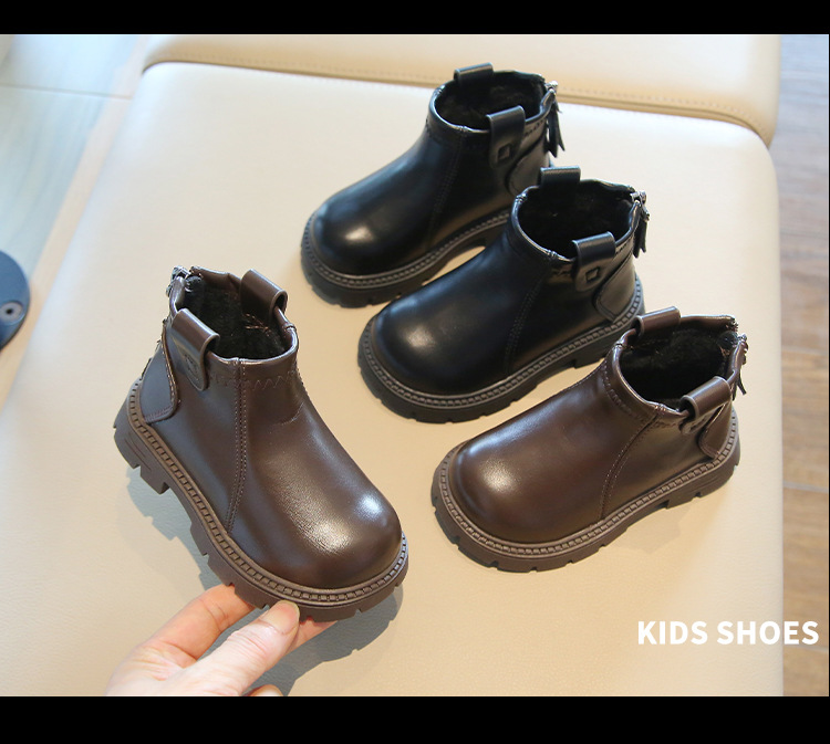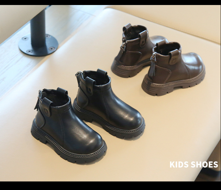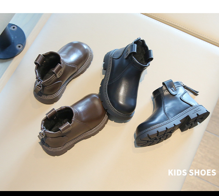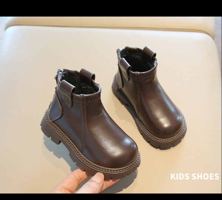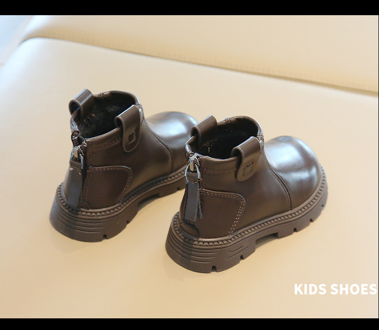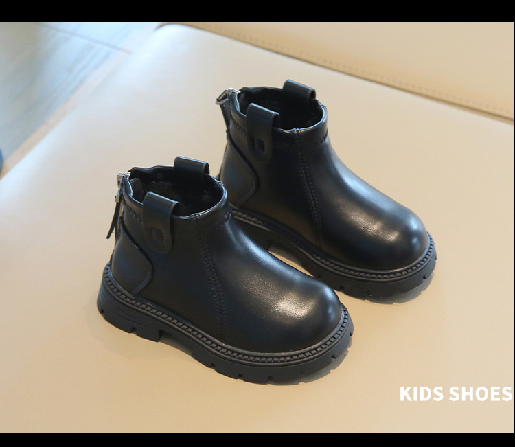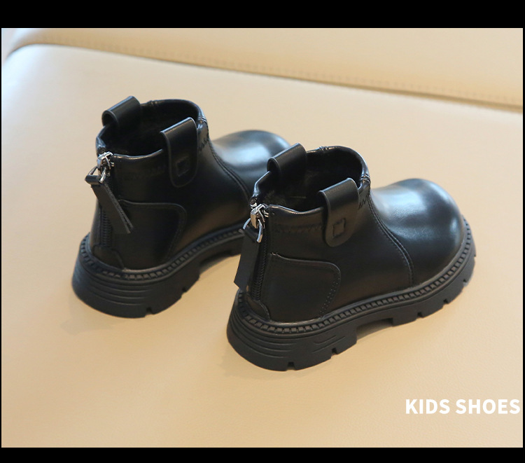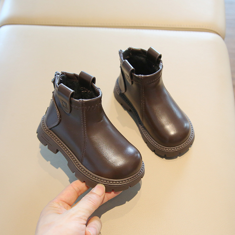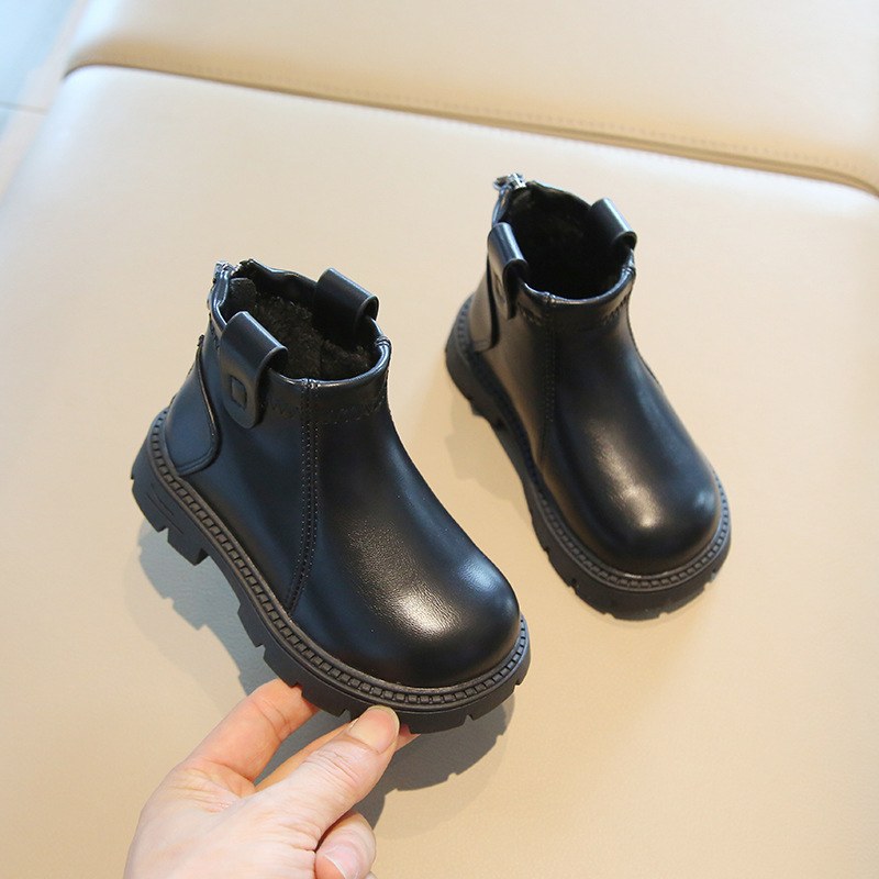 소녀 코튼 신발 단색 짧은 부츠 2024 가을 새로운 작은 중간 어린이 등 지퍼 코튼 부츠 아기 영국 스타일 부츠