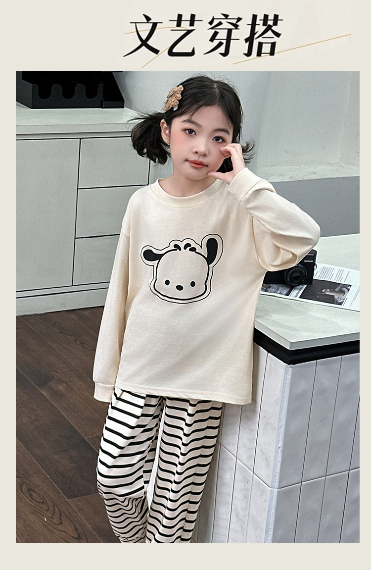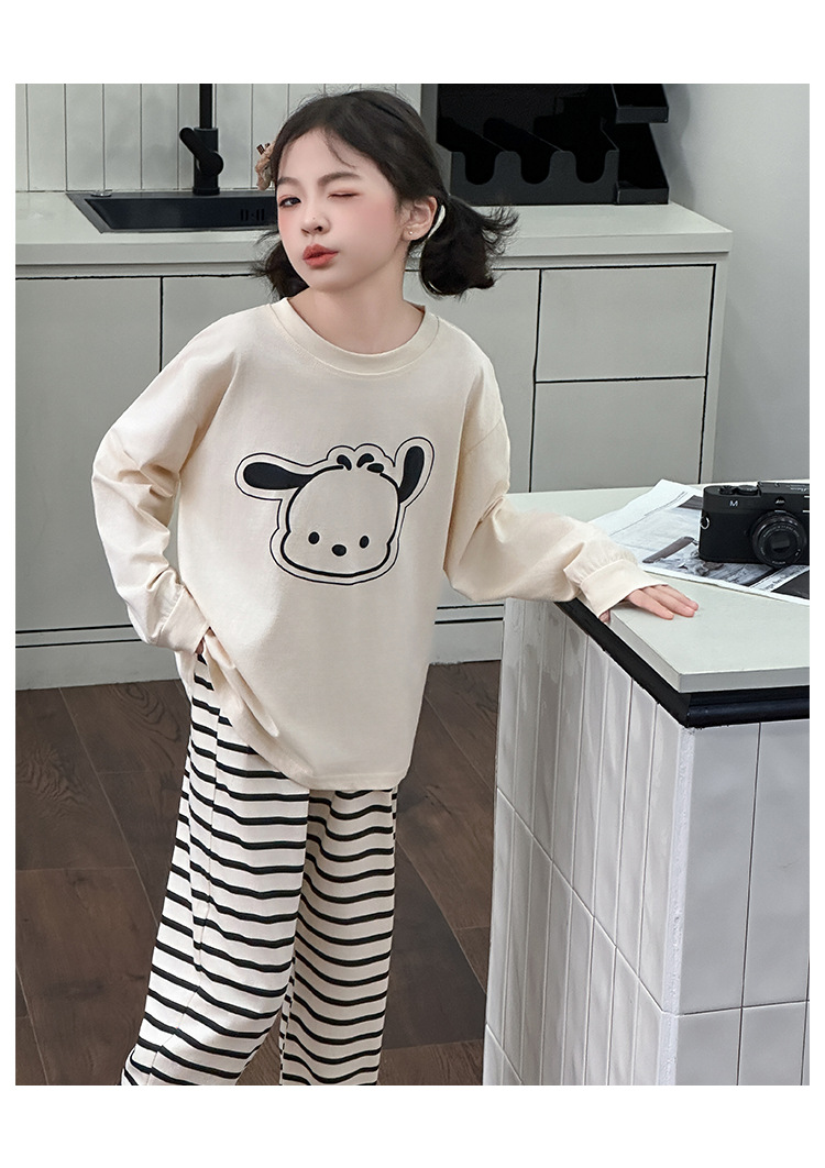 소녀 줄무늬 잠옷 봄과 가을 어린이 긴팔 홈 옷 공주 큰 소년 소녀의 만화 가을 옷 가을 바지 세트스토어 가기