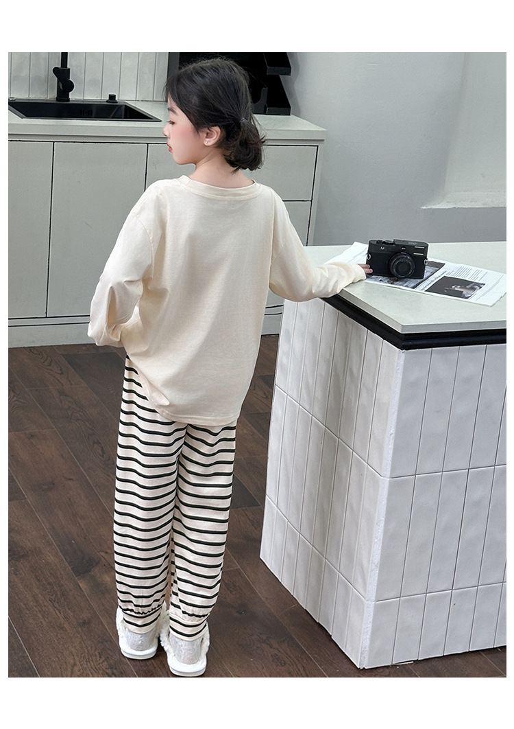 소녀 줄무늬 잠옷 봄과 가을 어린이 긴팔 홈 옷 공주 큰 소년 소녀의 만화 가을 옷 가을 바지 세트