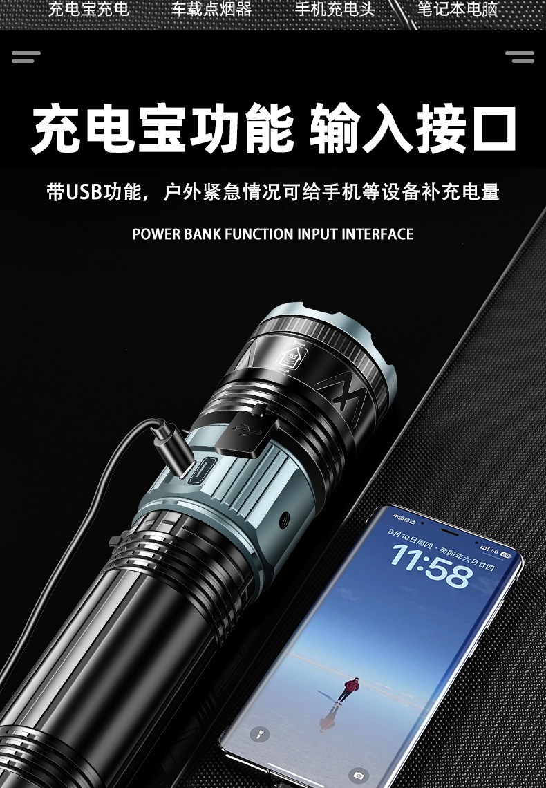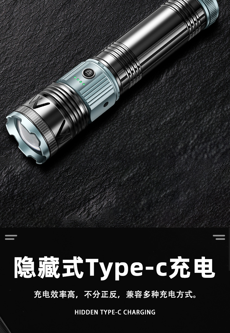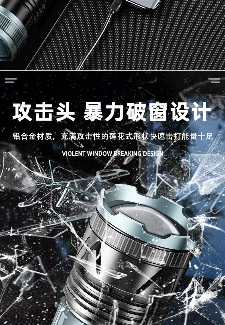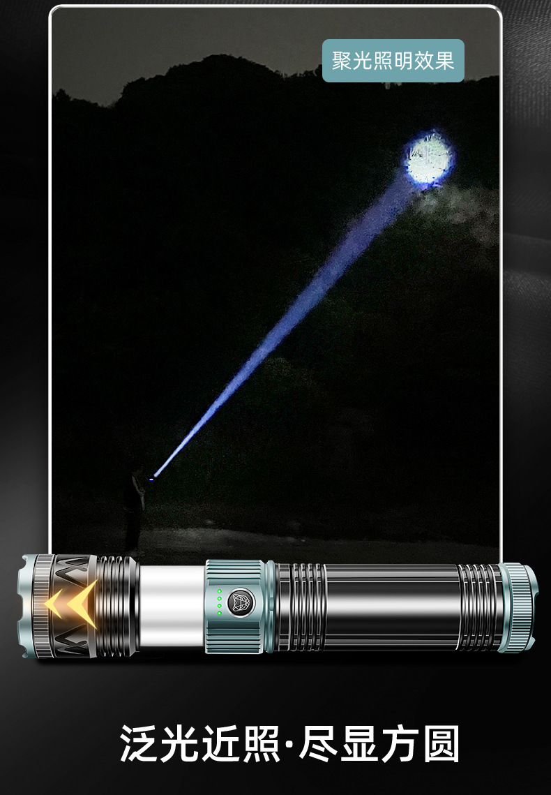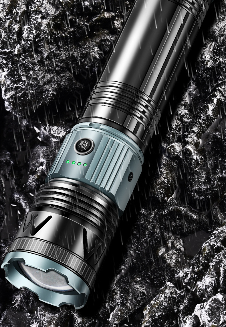 국경 간 새로운 손전등 알루미늄 합금 손전등 충전식 야외 다기능 비상 조명 오래 지속되는 배터리 수명