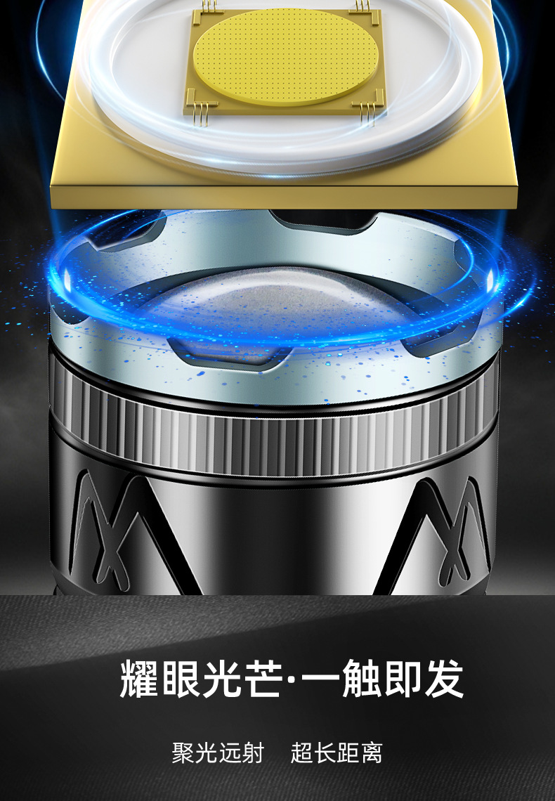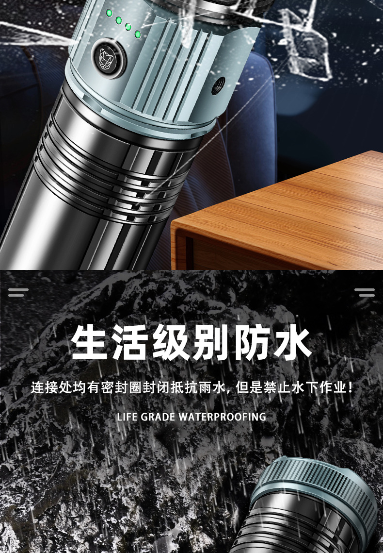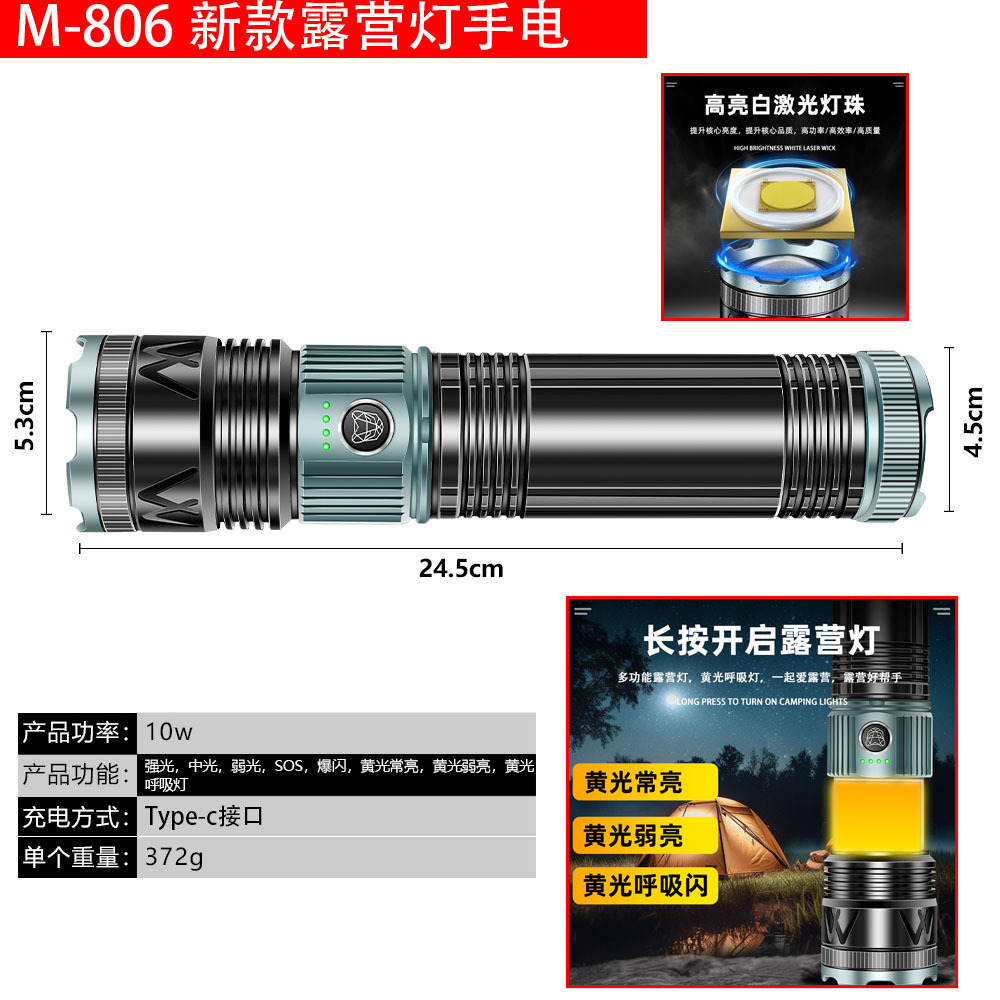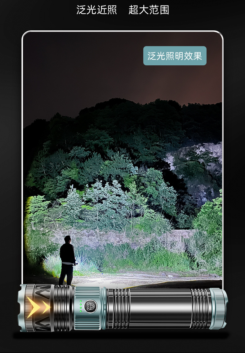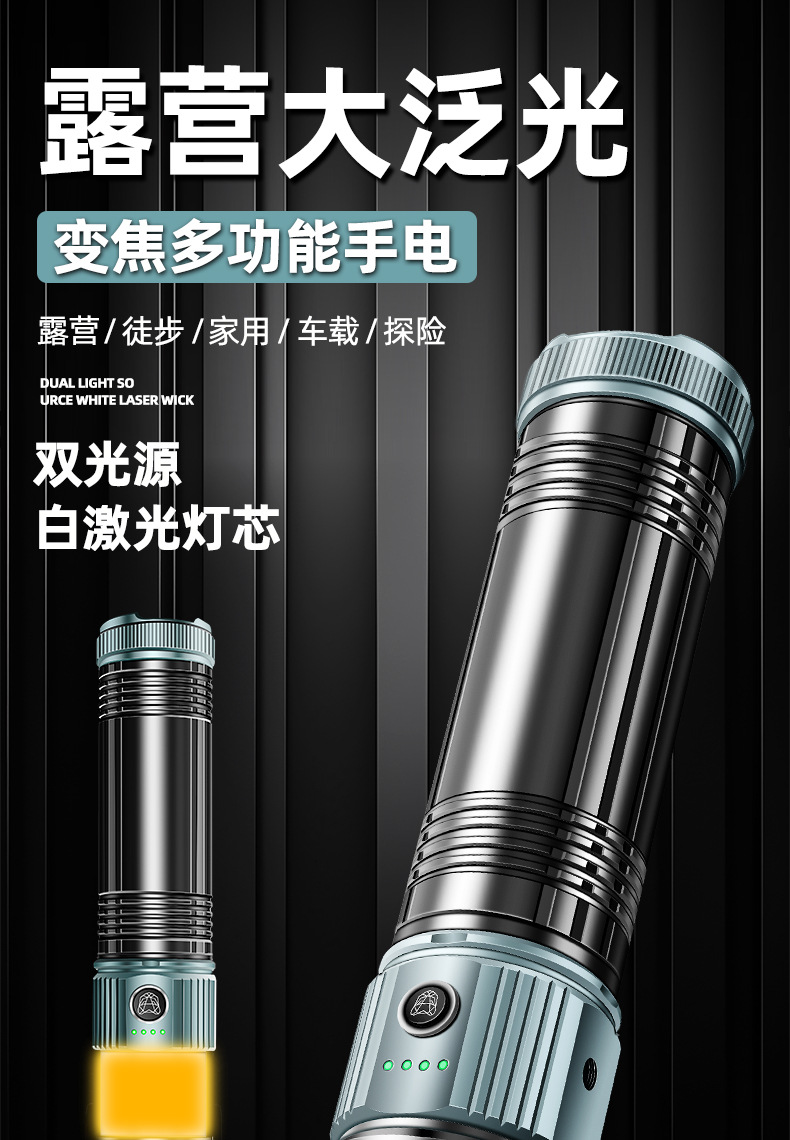 국경 간 새로운 손전등 알루미늄 합금 손전등 충전식 야외 다기능 비상 조명 오래 지속되는 배터리 수명