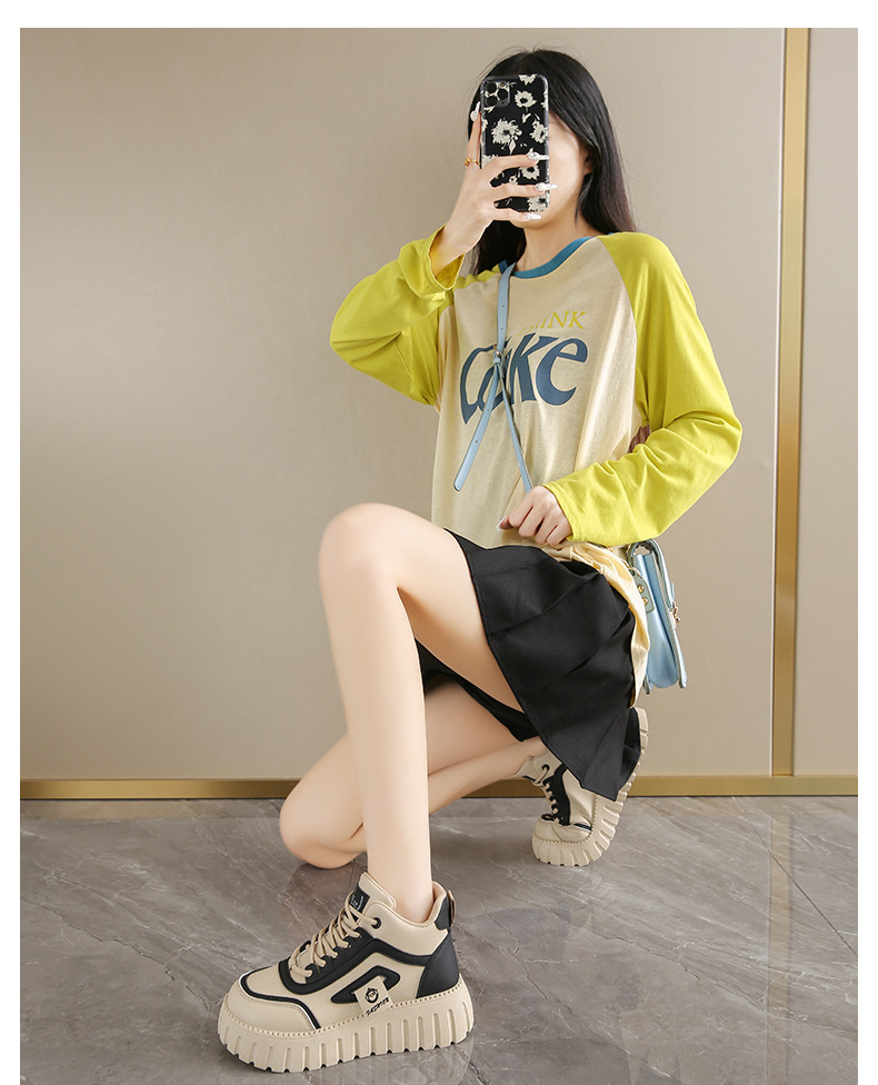 2024 년 가을 신간 한국식 하이탑 화이트 슈즈 여성용 두꺼운 올매치 캐주얼 스포츠 보드 슈즈 트렌디 KT12261스토어 가기