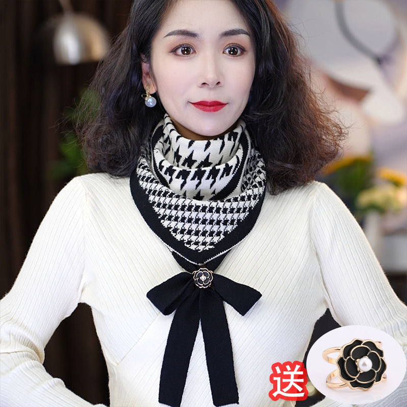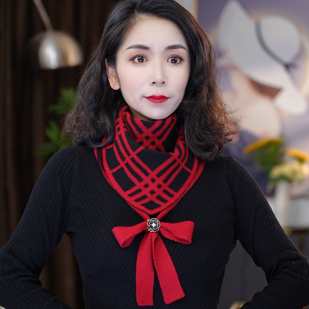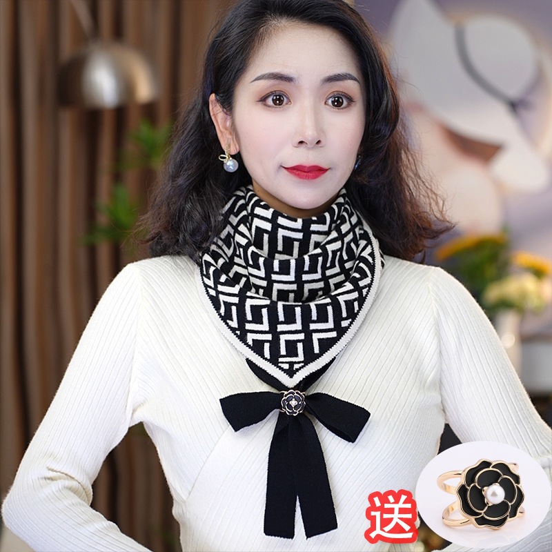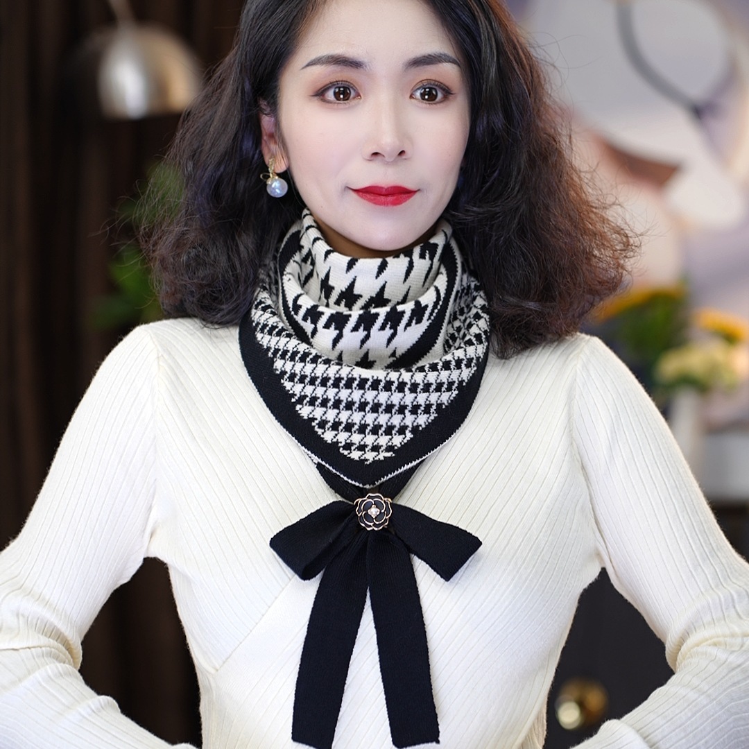 2024 가을과 겨울의 새로운 삼각형 스카프 리본 양면 2 색 목 따뜻한 스카프 여성 크기 100-36cm