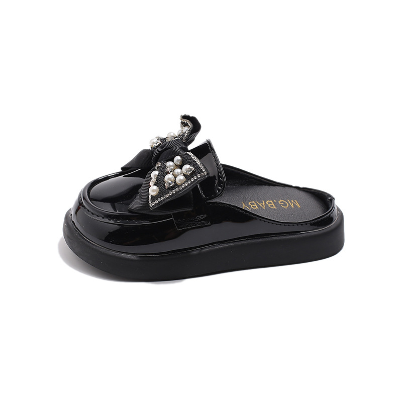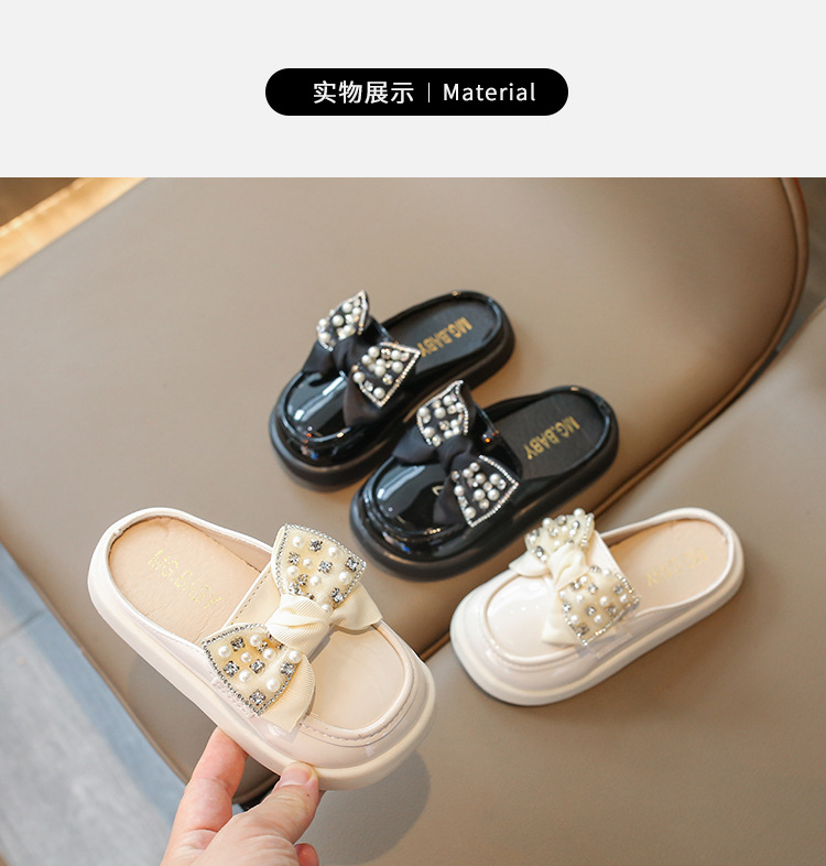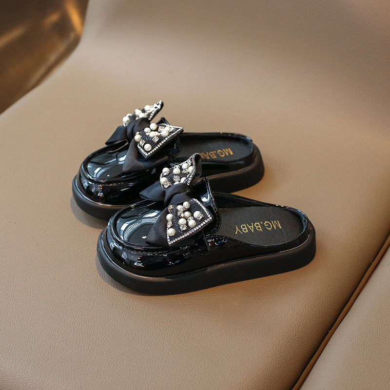 여자 슬립 온 달콤한 라인스톤 보우 샌들 2024 여름 새로운 한국식 올매치 어린이 발가락 슬리퍼