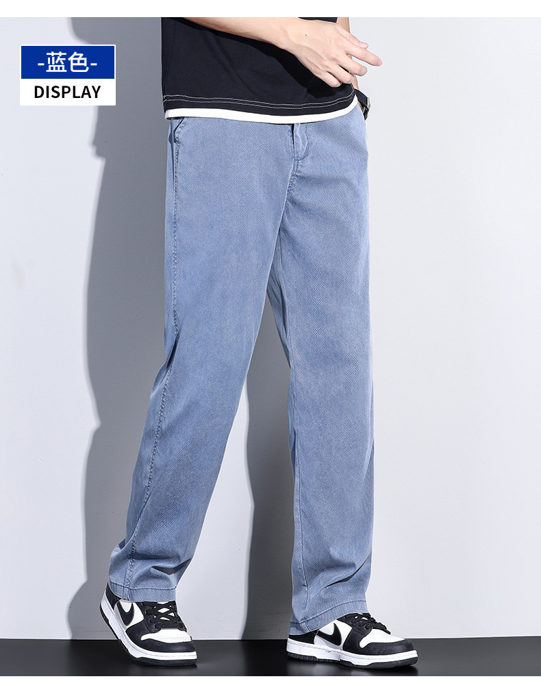 라이셀 텐셀 캐주얼 드레이프 스트레이트 팬츠 남성 여름 루즈핏 얇은 아이스 실크 바지 남성용 다용도 바지스토어 가기