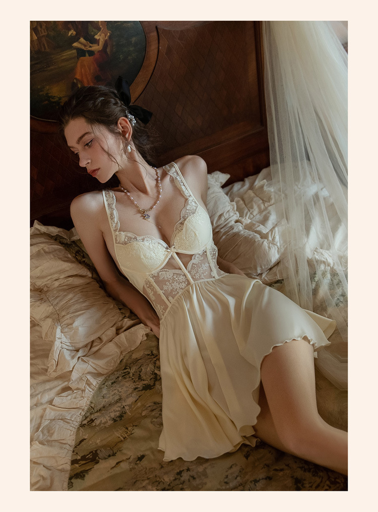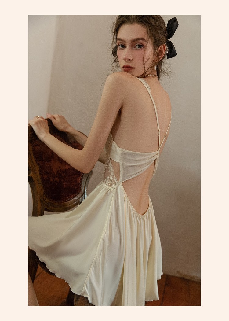 오리지널 프랑스풍 섹시 잠옷 여성용 2025 신상 통기성 좋은 패드 내장 슬립 잠옷, 지적인 고급스러움을 더한 홈웨어스토어 가기