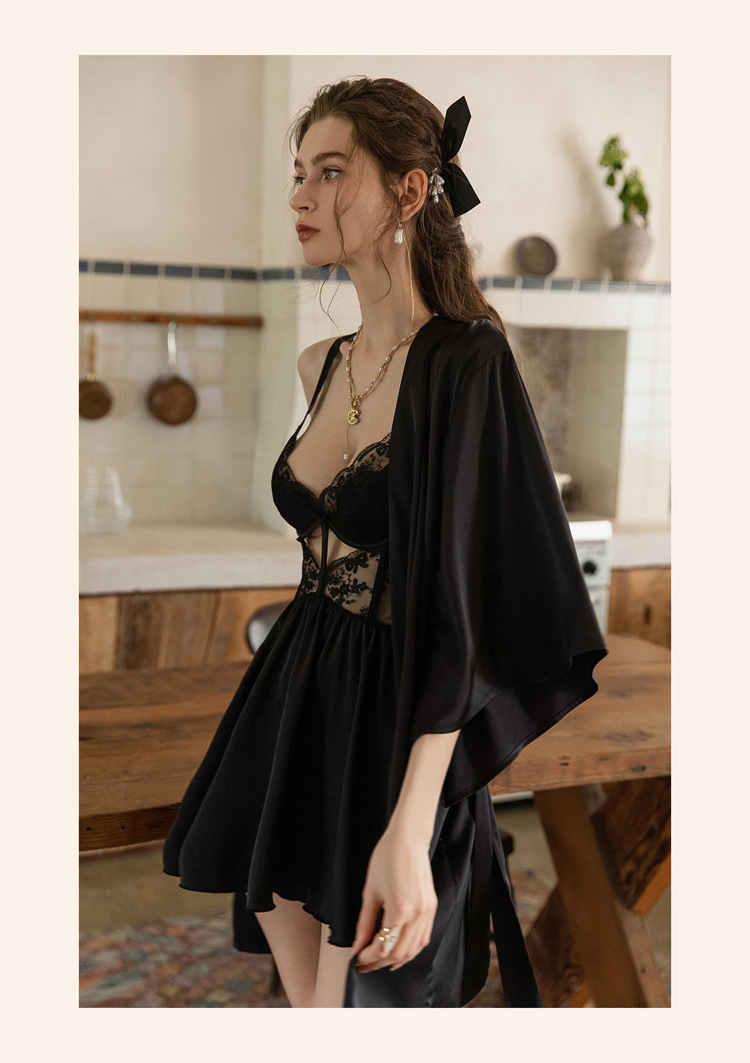 오리지널 프랑스풍 섹시 잠옷 여성용 2025 신상 통기성 좋은 패드 내장 슬립 잠옷, 지적인 고급스러움을 더한 홈웨어