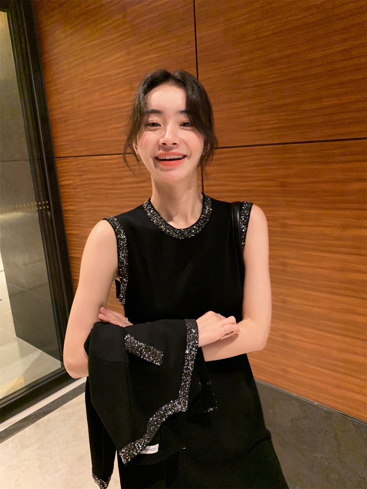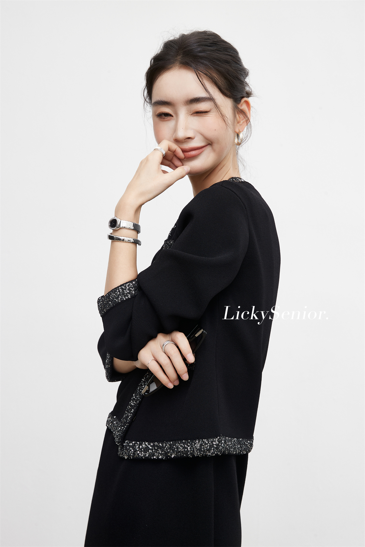 LICKYSENIOR 별을 입고 비드 원사 세트 여성 초가을 최고 치마 투피스 세트