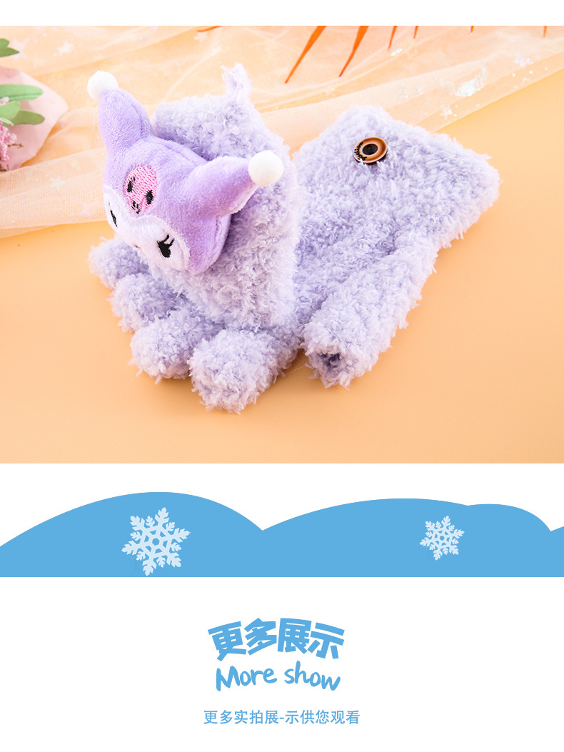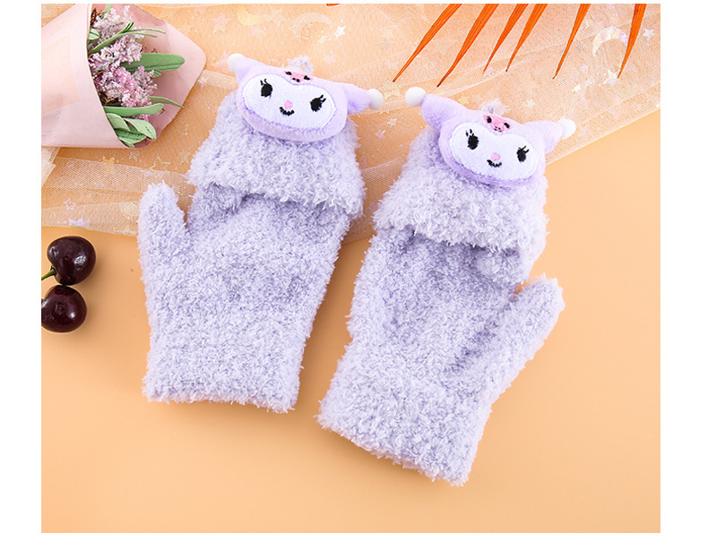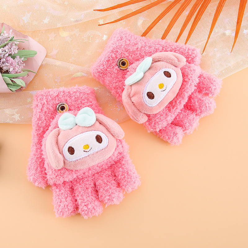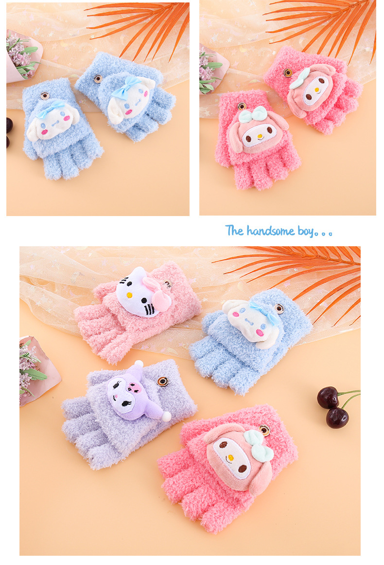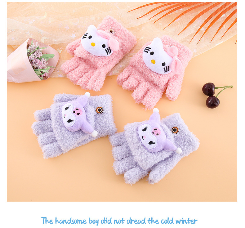 어린이 겨울용 귀여운 만화 캐릭터 방한 다섯 손가락 분리형 플립업 6-12세 초등학생용 플러시 니트 장갑
