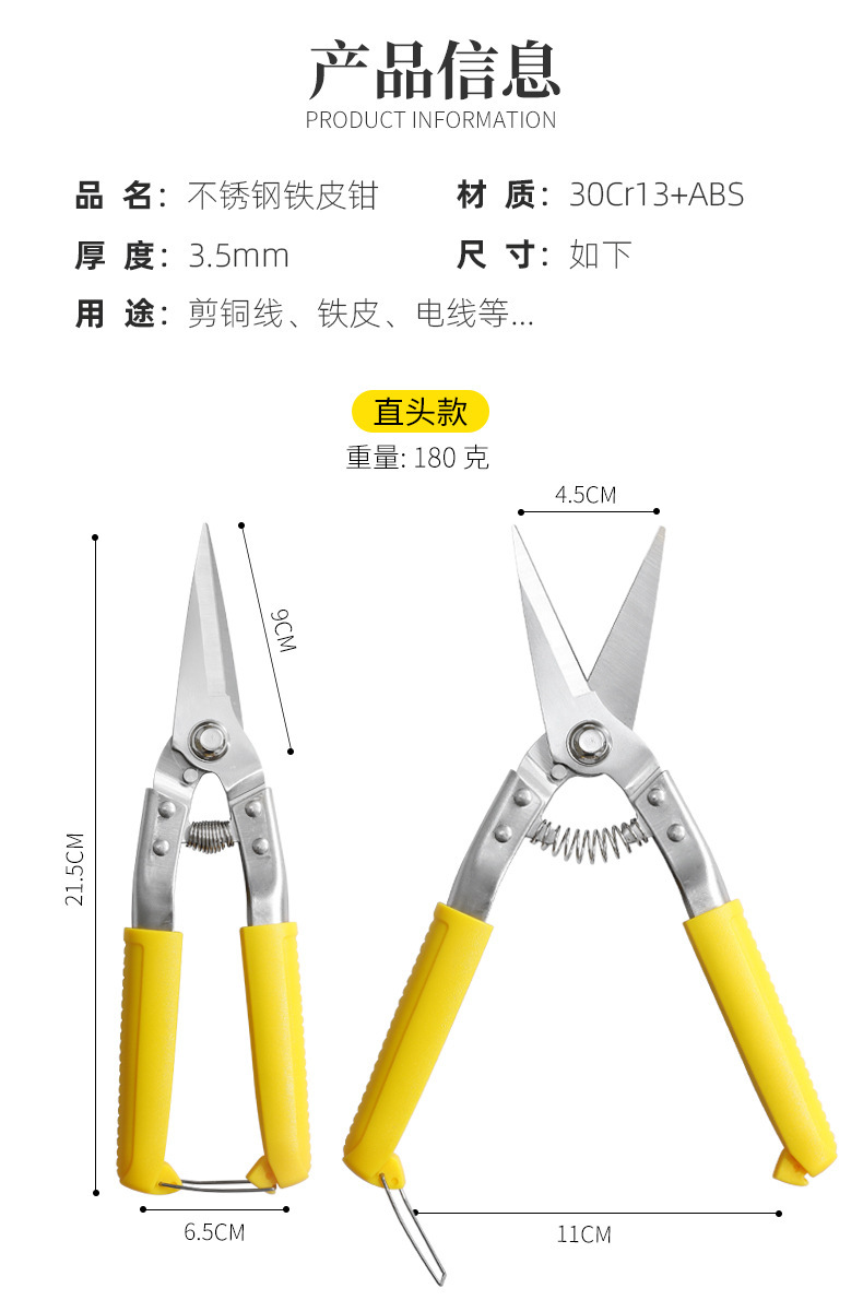 공장 도매 얇은 철 가위 강한 용골 가위 수동 강철 벨트 산업 가위 전자 가위스토어 가기