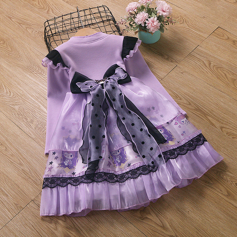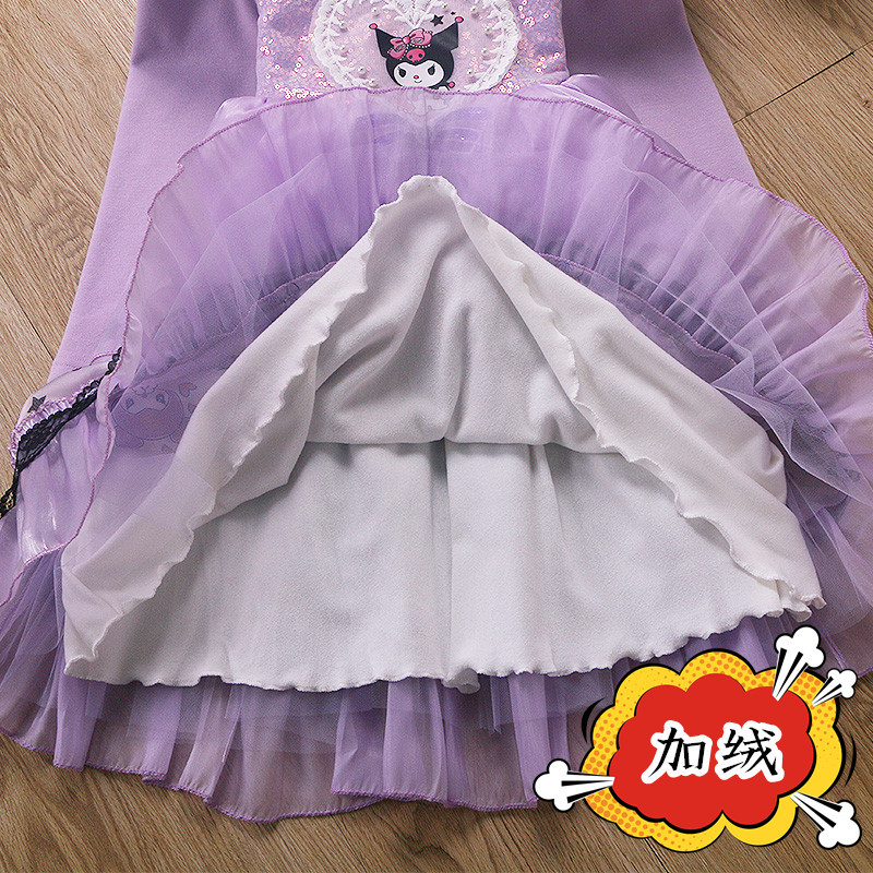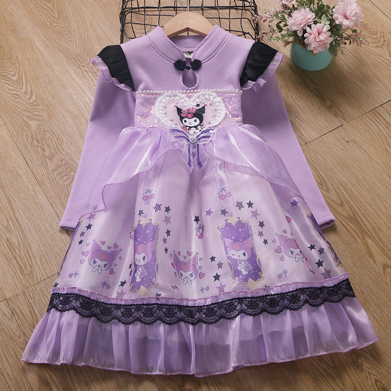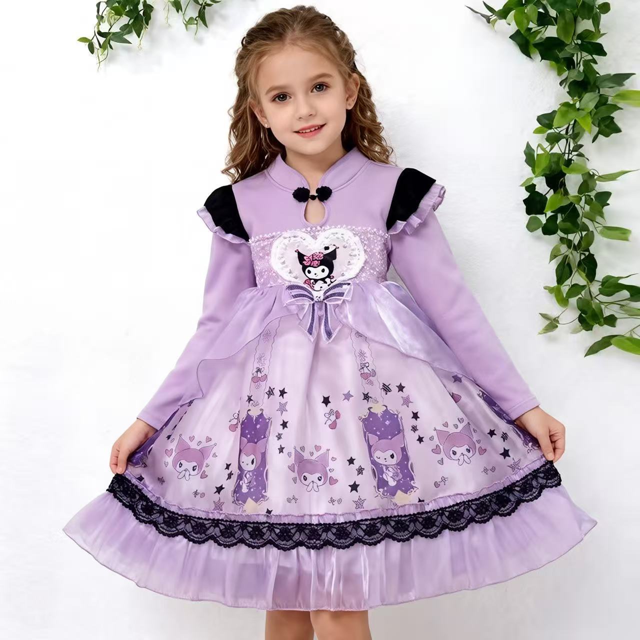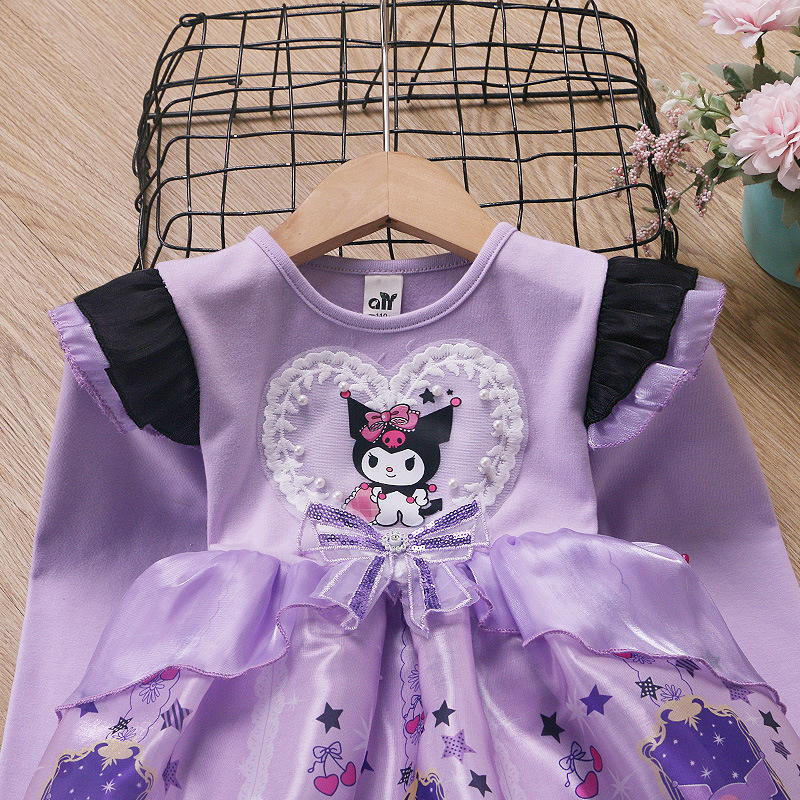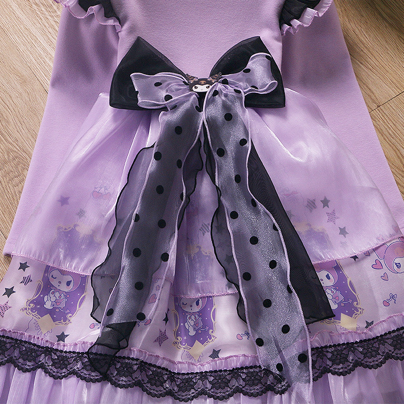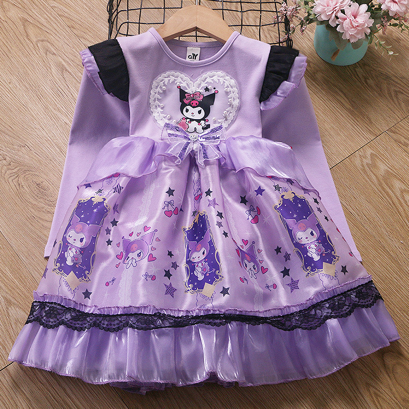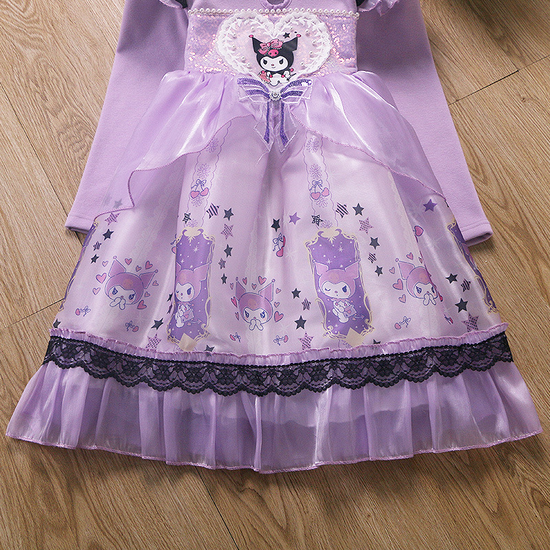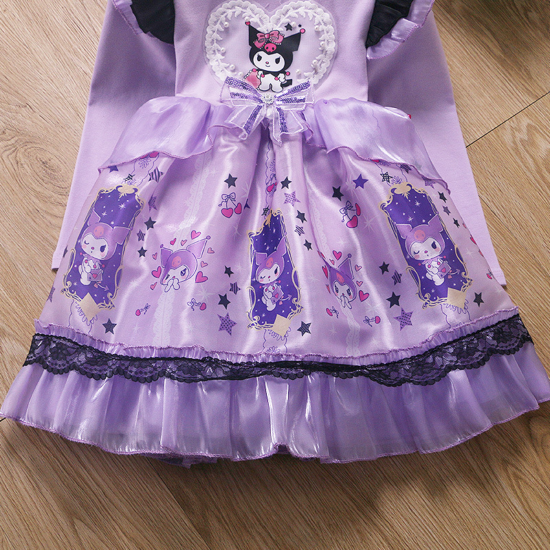2025 겨울 여아 쿠로미 공주 만화 귀엽고 달콤한 로리타 스타일 퍼프 스커트 원피스
