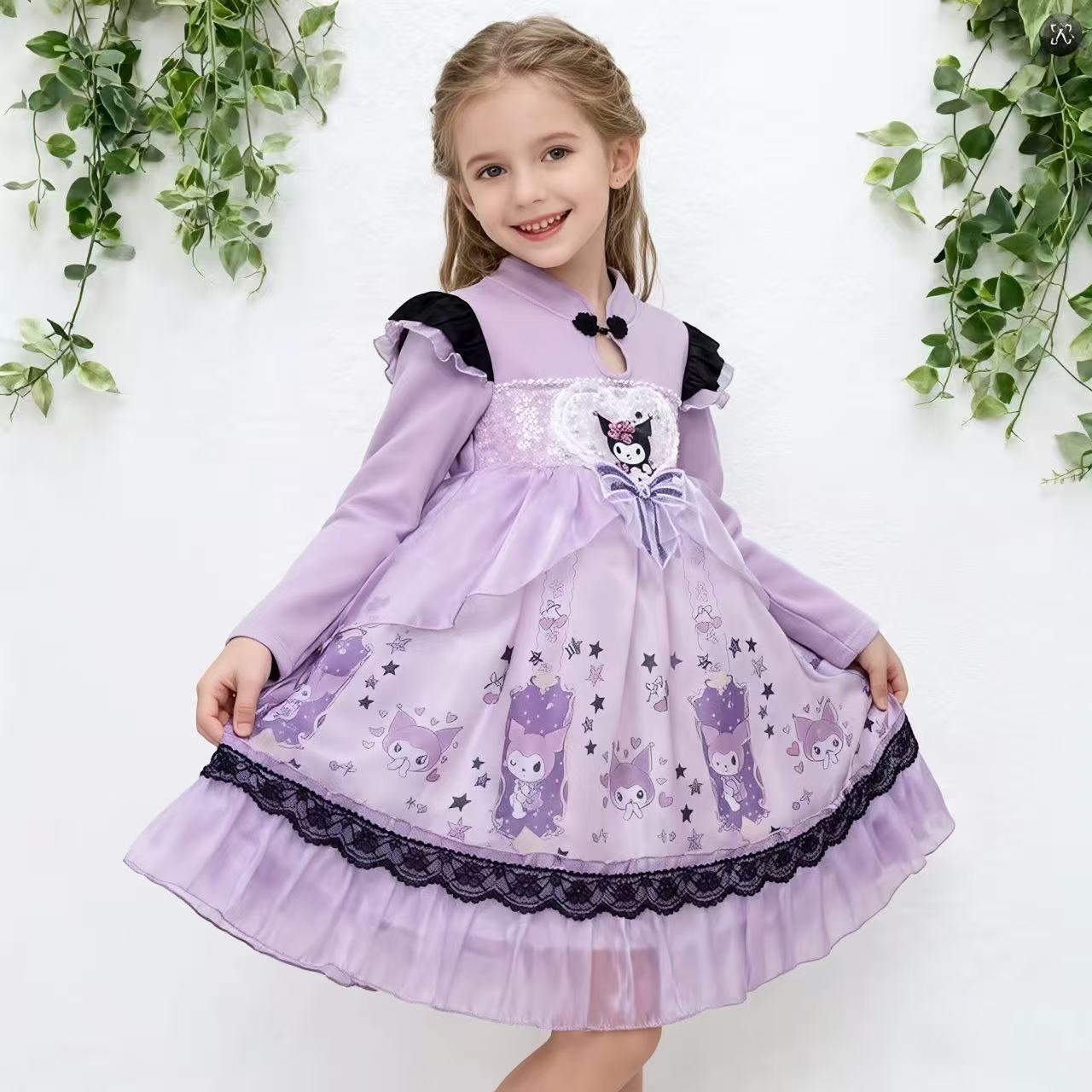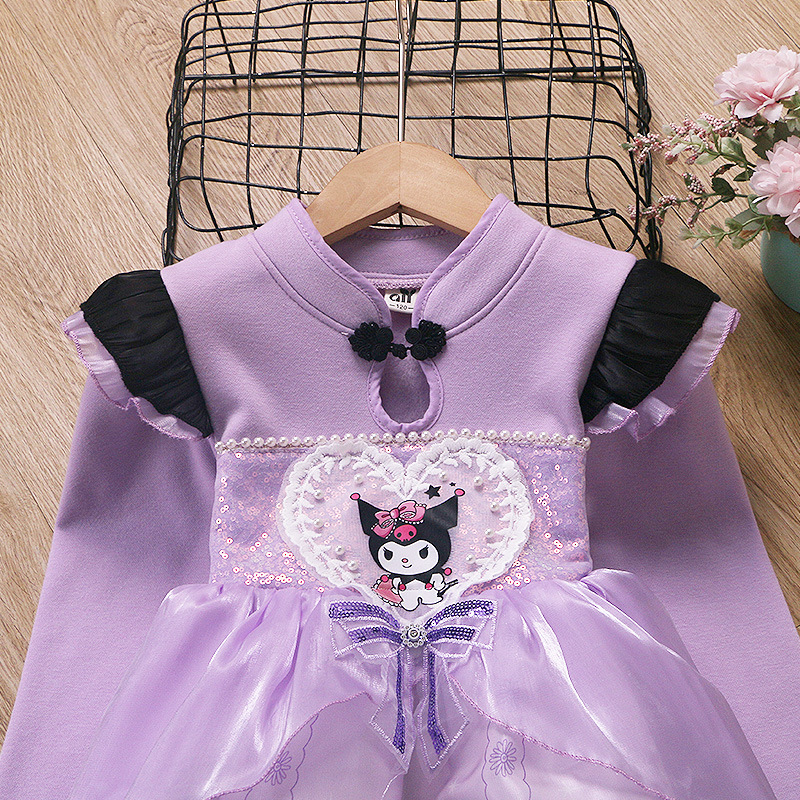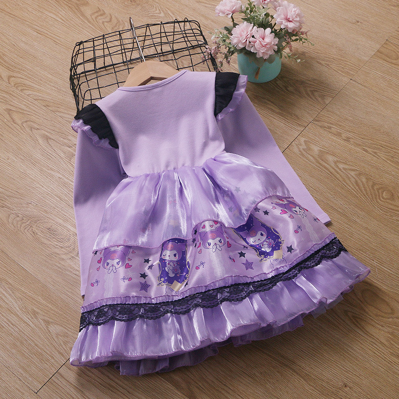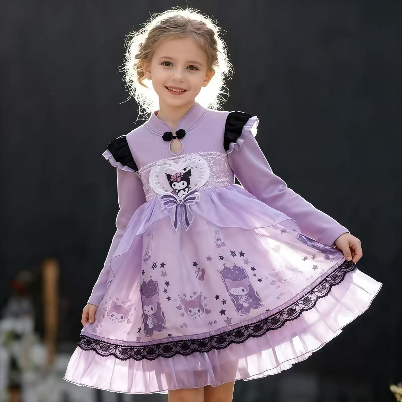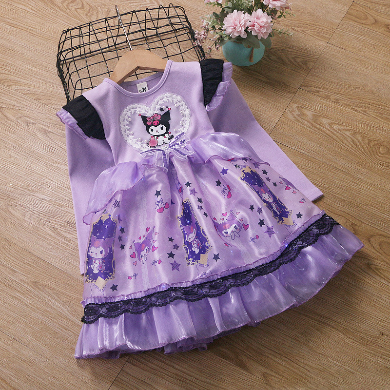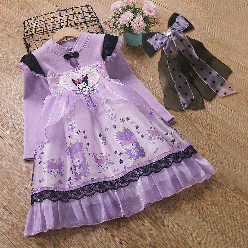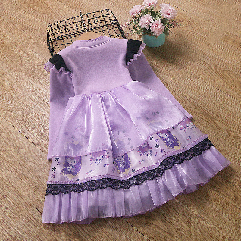 2025 겨울 여아 쿠로미 공주 만화 귀엽고 달콤한 로리타 스타일 퍼프 스커트 원피스