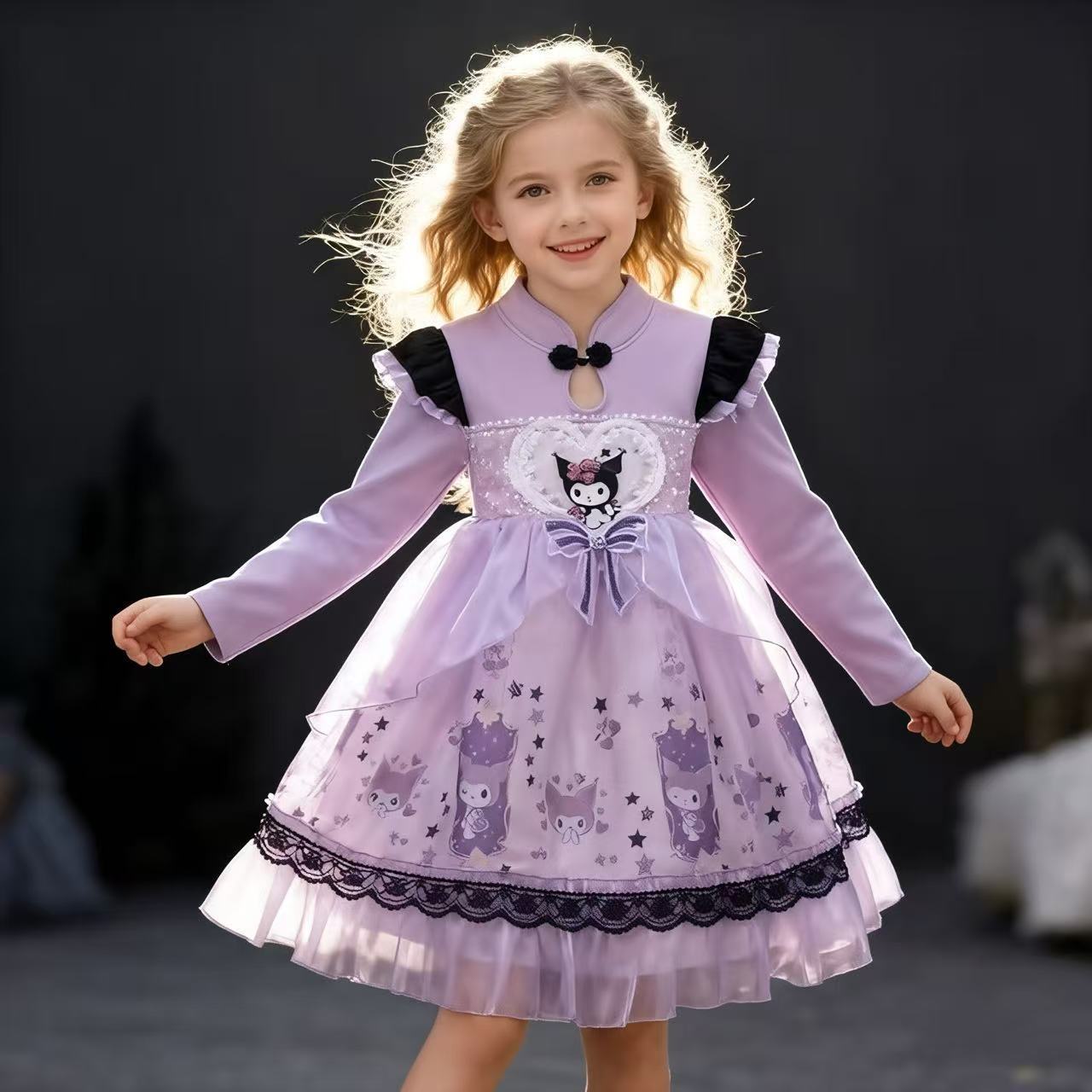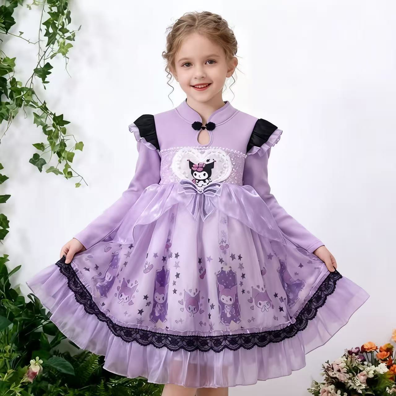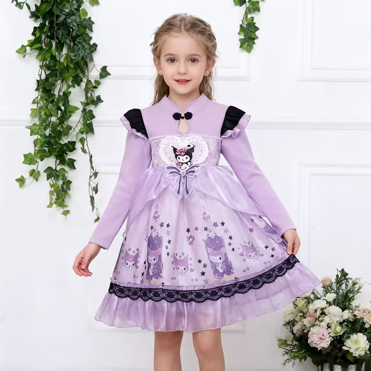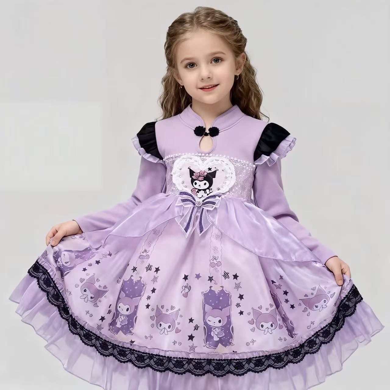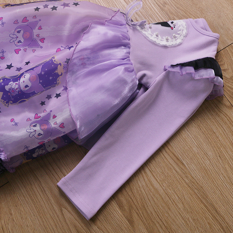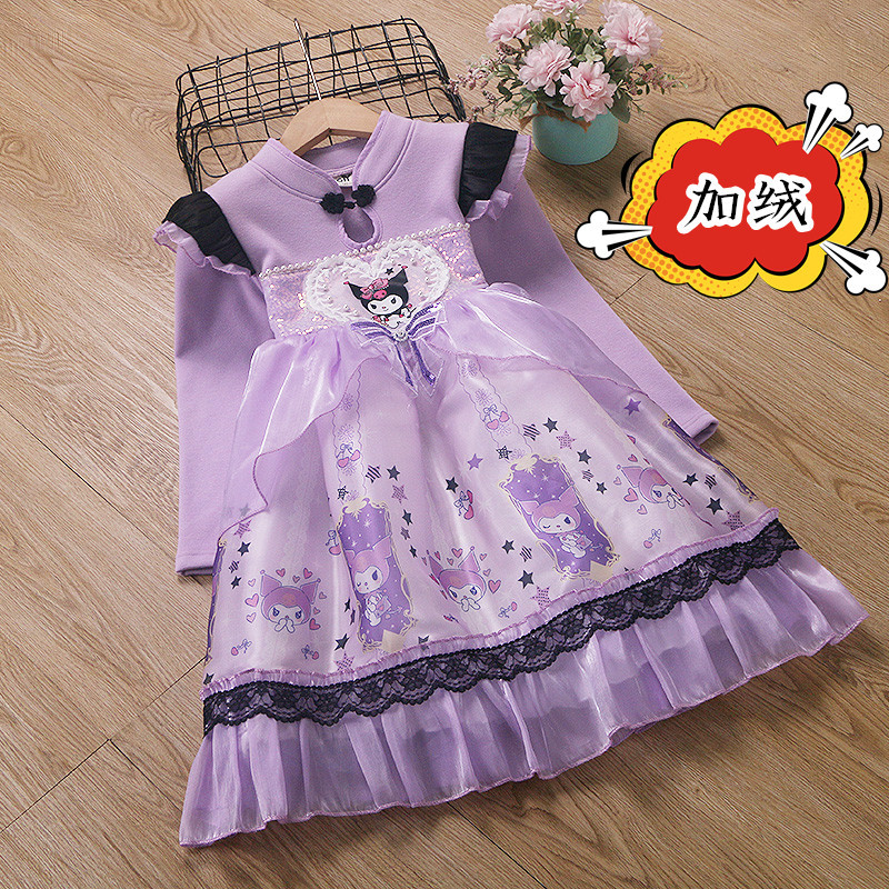 2025 겨울 여아 쿠로미 공주 만화 귀엽고 달콤한 로리타 스타일 퍼프 스커트 원피스