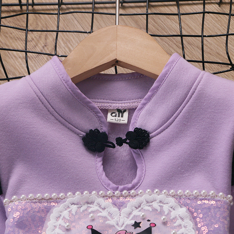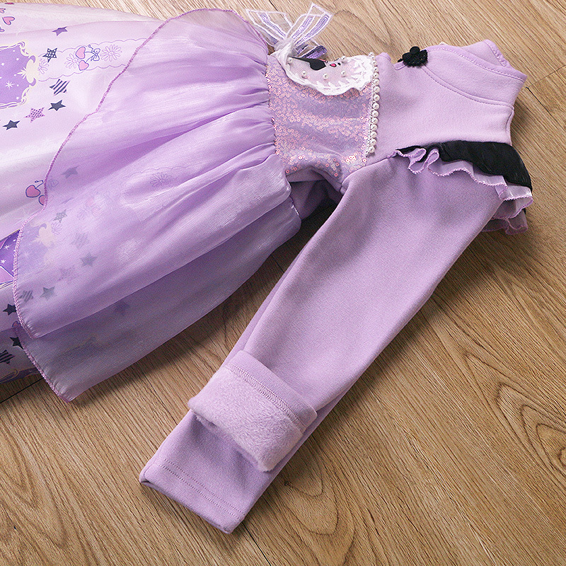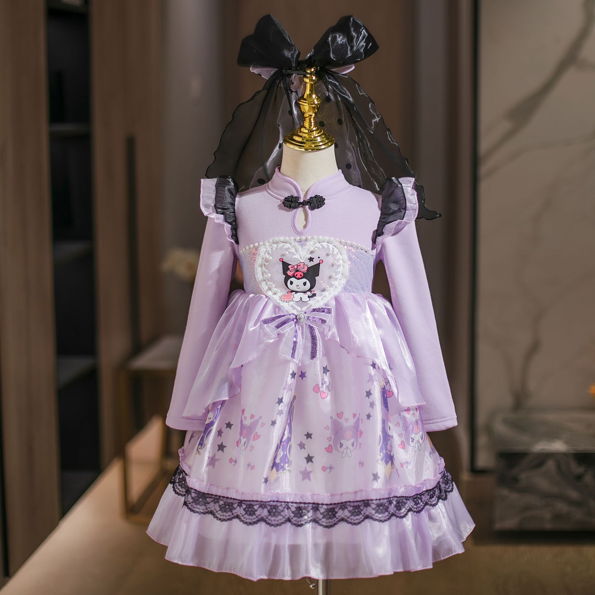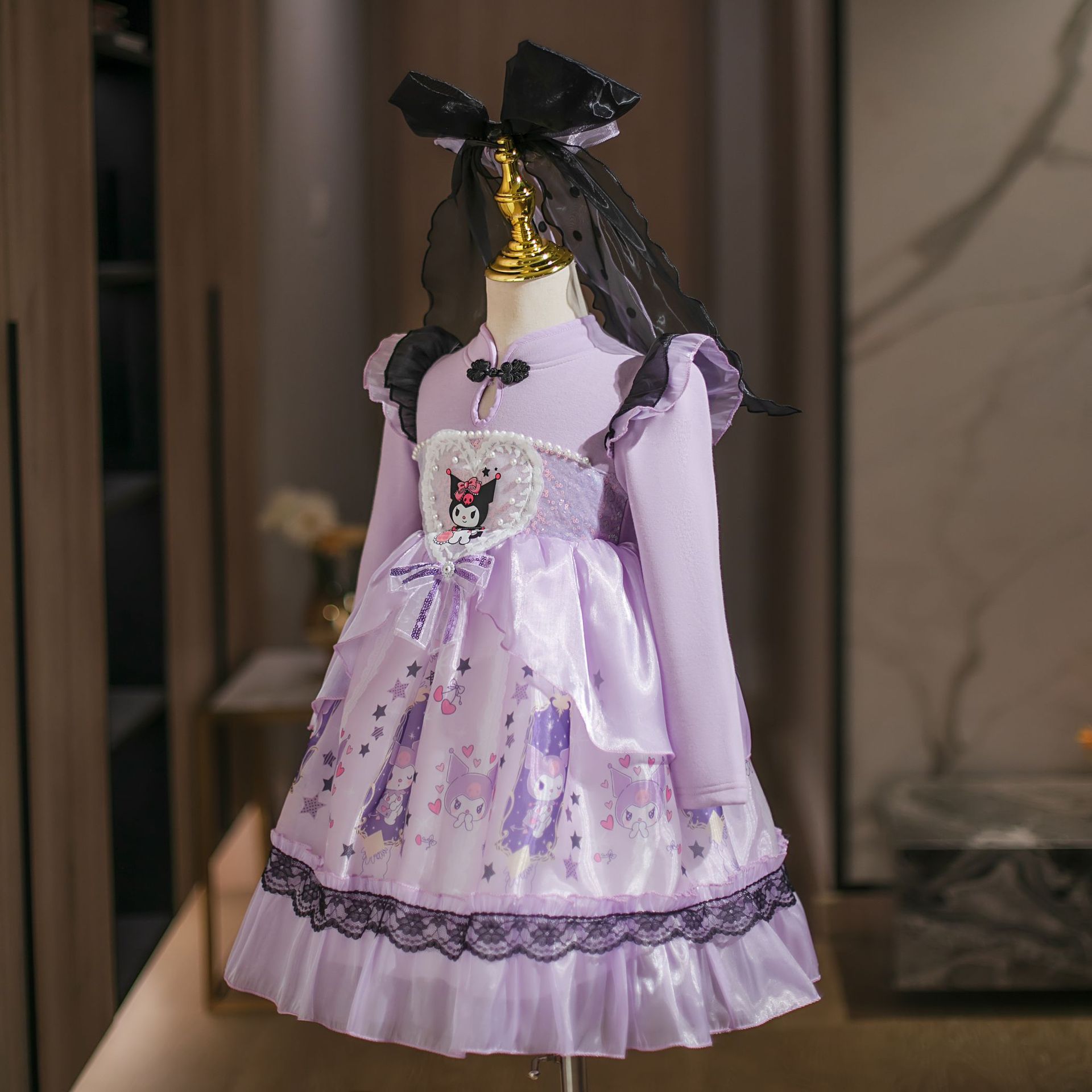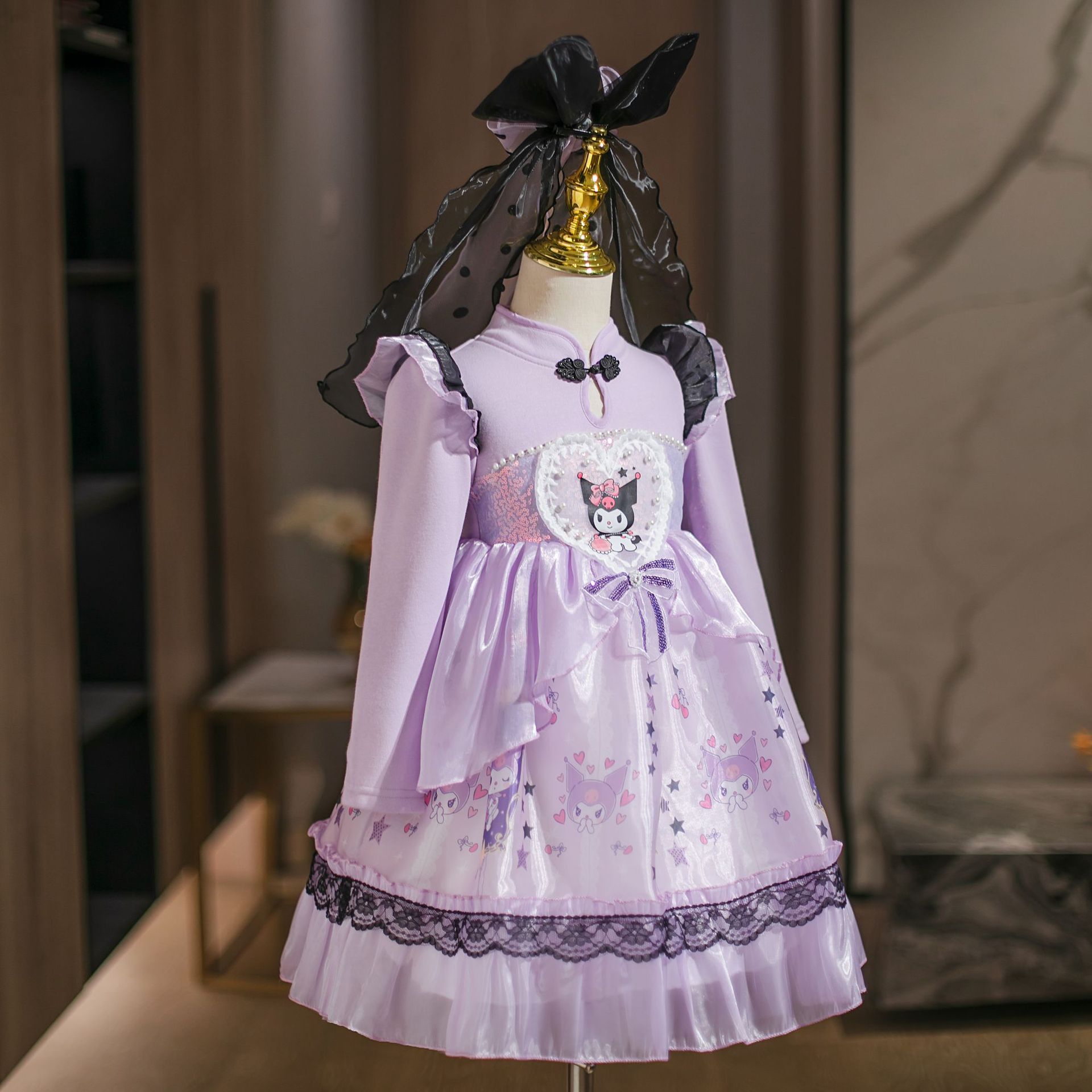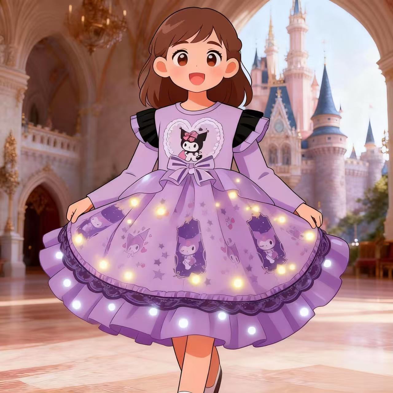 2025 겨울 여아 쿠로미 공주 만화 귀엽고 달콤한 로리타 스타일 퍼프 스커트 원피스