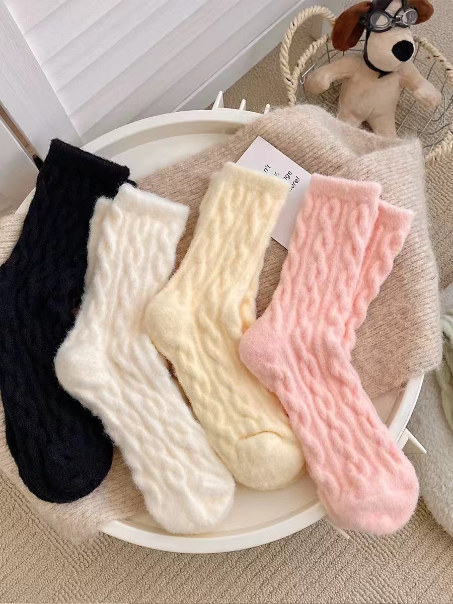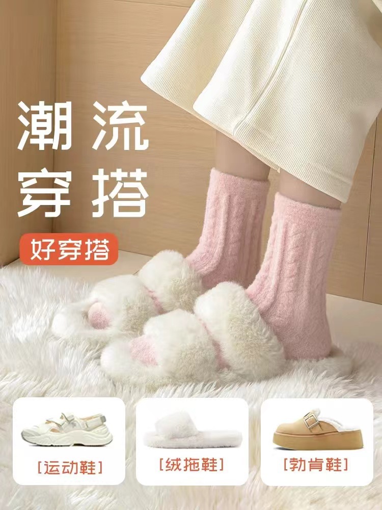호주 벨벳 트위스트 양말 어린이 양말 가을과 겨울 단색 간단한 바닥 양말 기모 부드러운 밀랍 따뜻한 가정 수면 양말스토어 가기