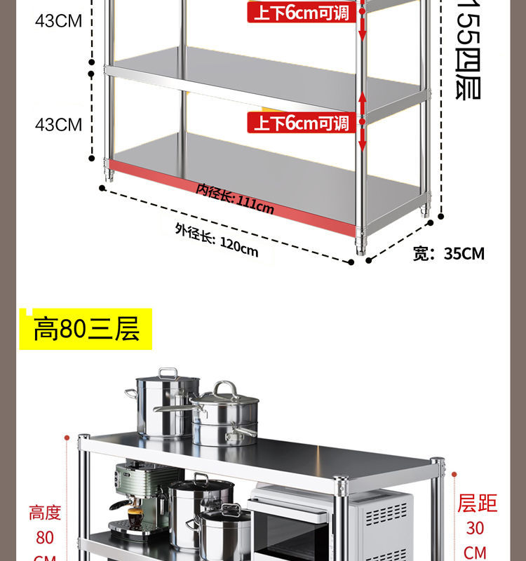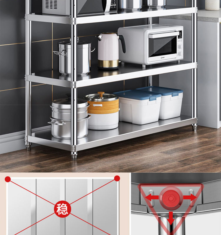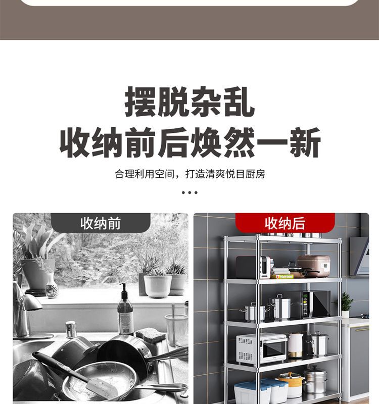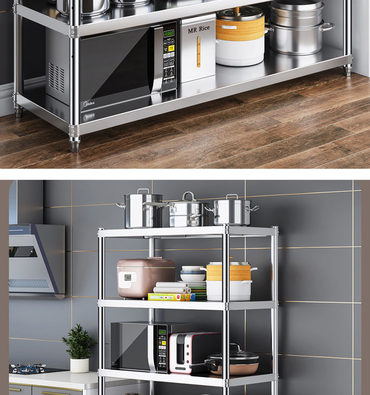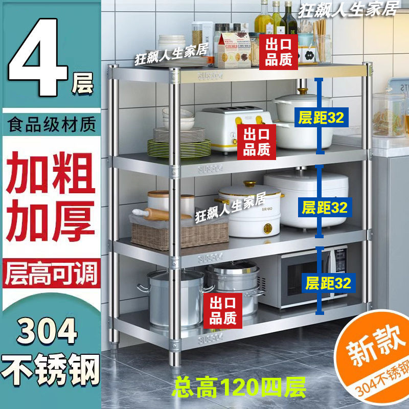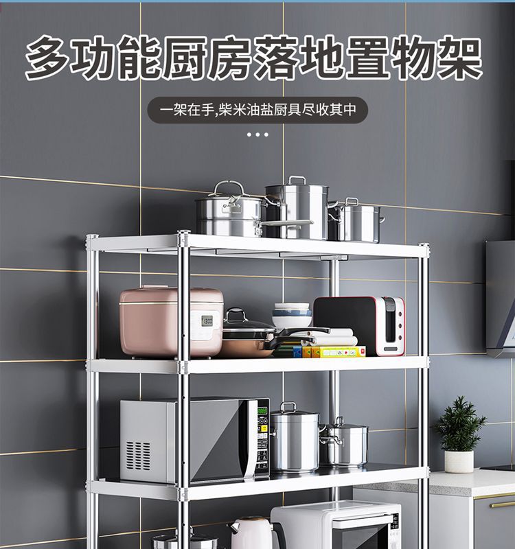 304 스테인레스 스틸 주방 랙 바닥 서 가정용 다층 보관 랙 5 층 전자 레인지 선반스토어 가기