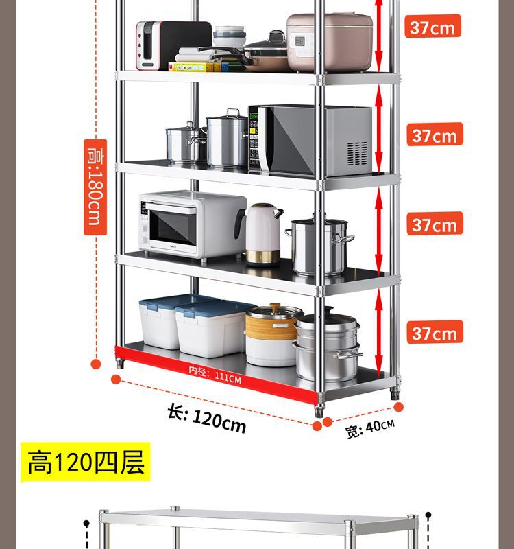 304 스테인레스 스틸 주방 랙 바닥 서 가정용 다층 보관 랙 5 층 전자 레인지 선반