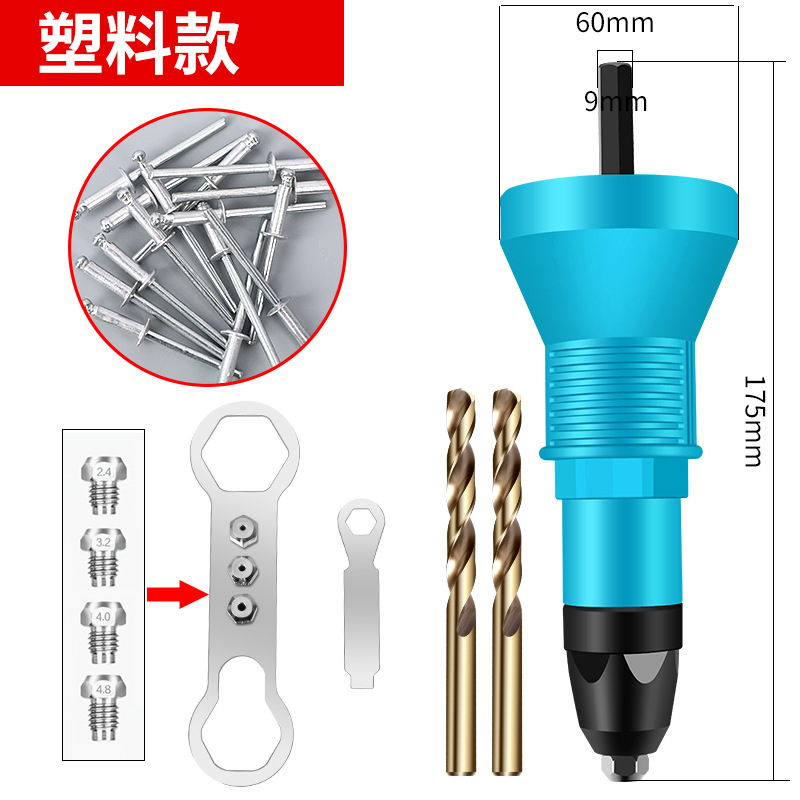 • (ABS 엔지니어링 플라스틱) 리벳 건 헤드 + 리벳 200개 + 드릴 비트 2개