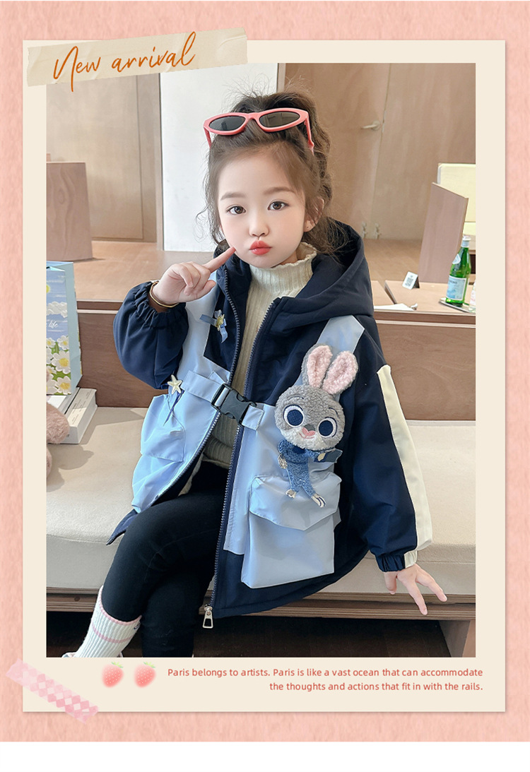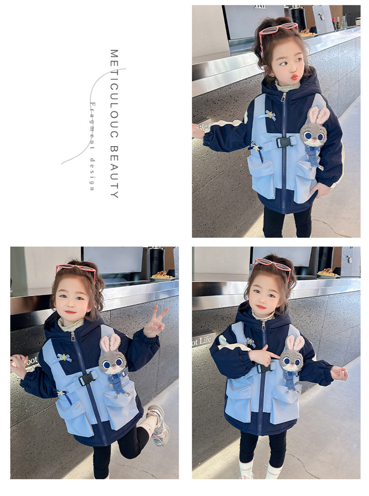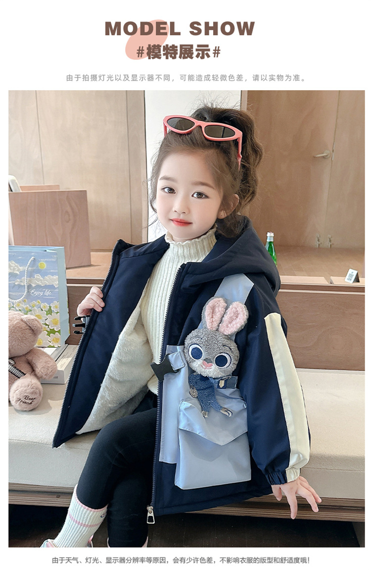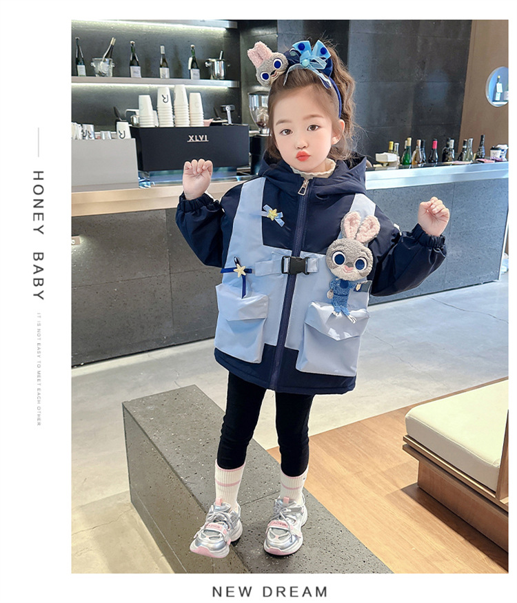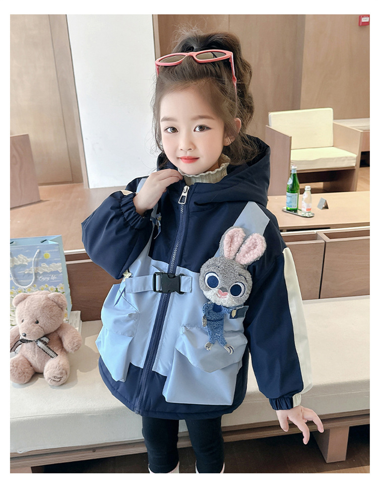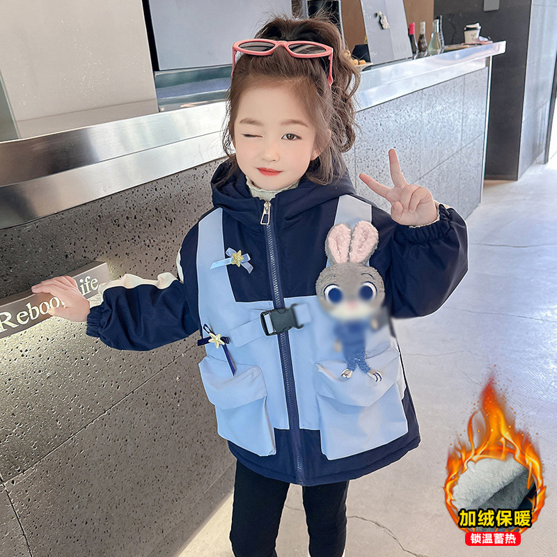 여자 기모 면 토끼 경찰관 재킷 2024 겨울 새 어린이 아기 파이크 면 옷스토어 가기