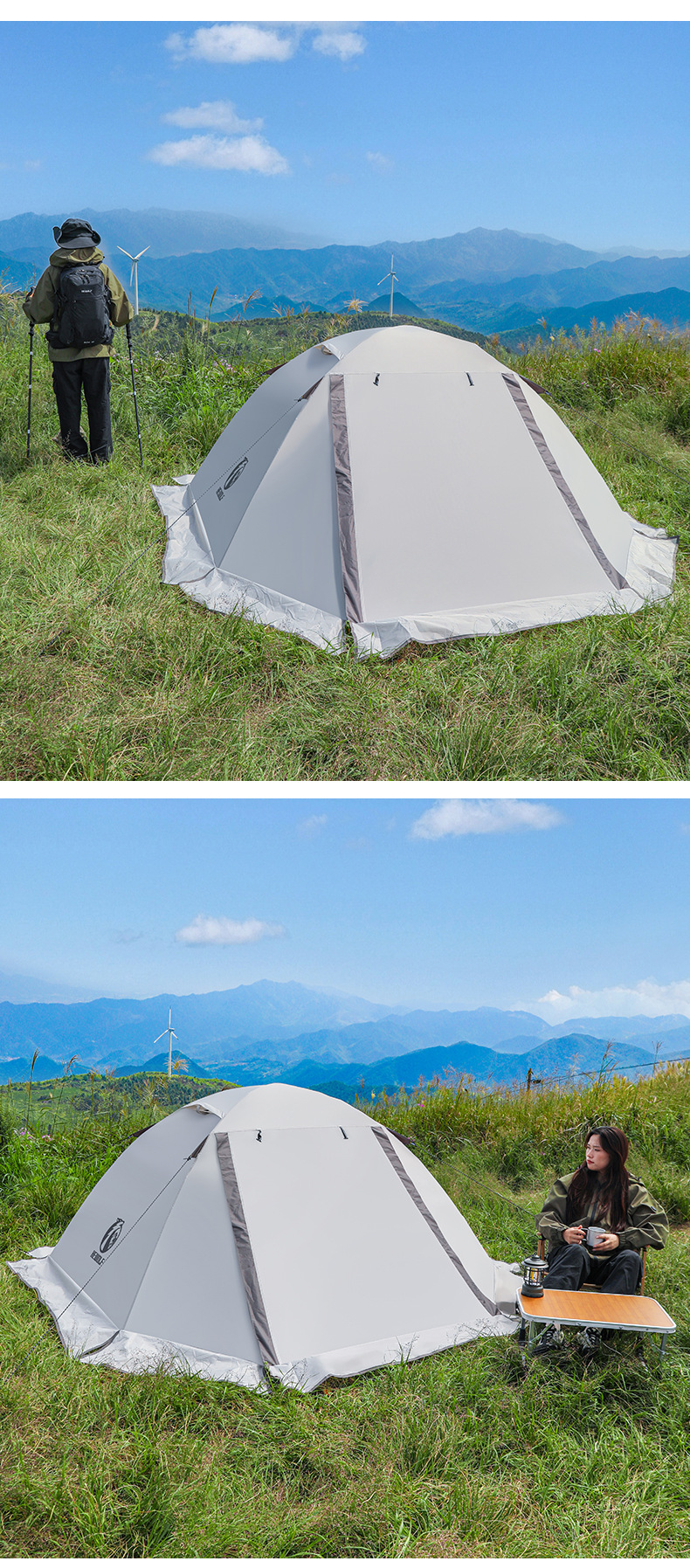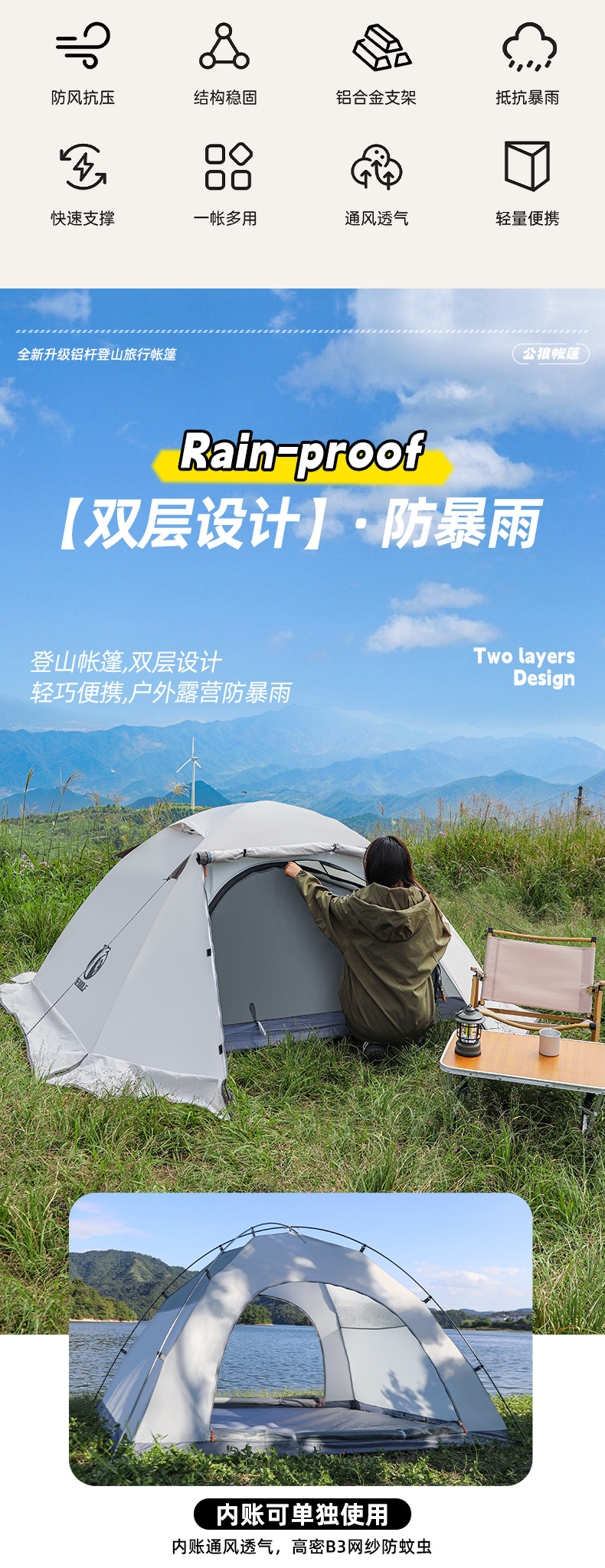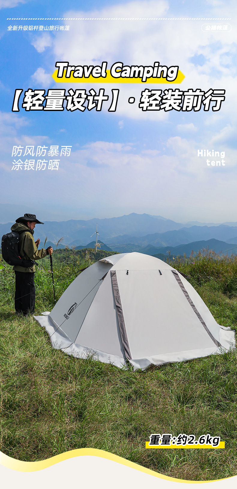 국경 간 공급 남성 늑대 야외 더블 레이어 하이킹 텐트 알루미늄 극 전문 방풍 및 방비 야외 캠핑 등산 텐트