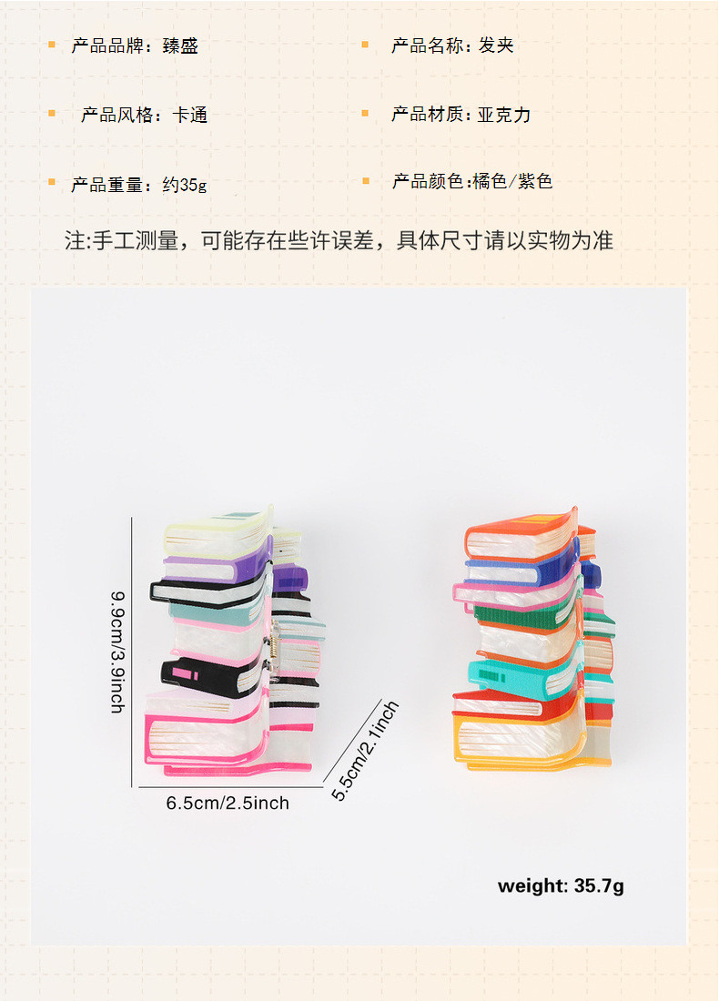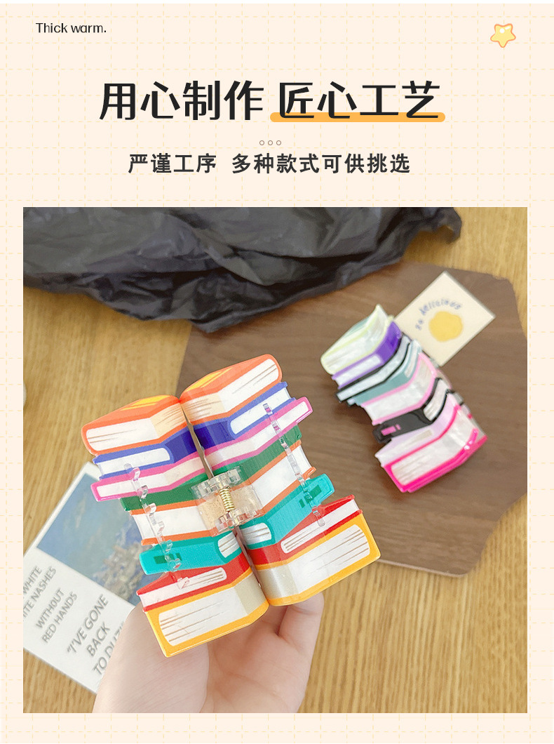 여성을위한 국경 간 인기 판매 골판지 아크릴 머리핀 컬러 매칭 도서 상어 클립 졸업 시즌 헤어 액세서리 머리 장식 클립스토어 가기