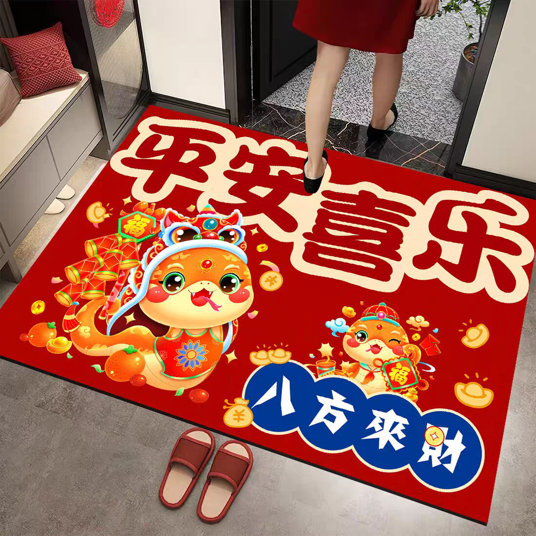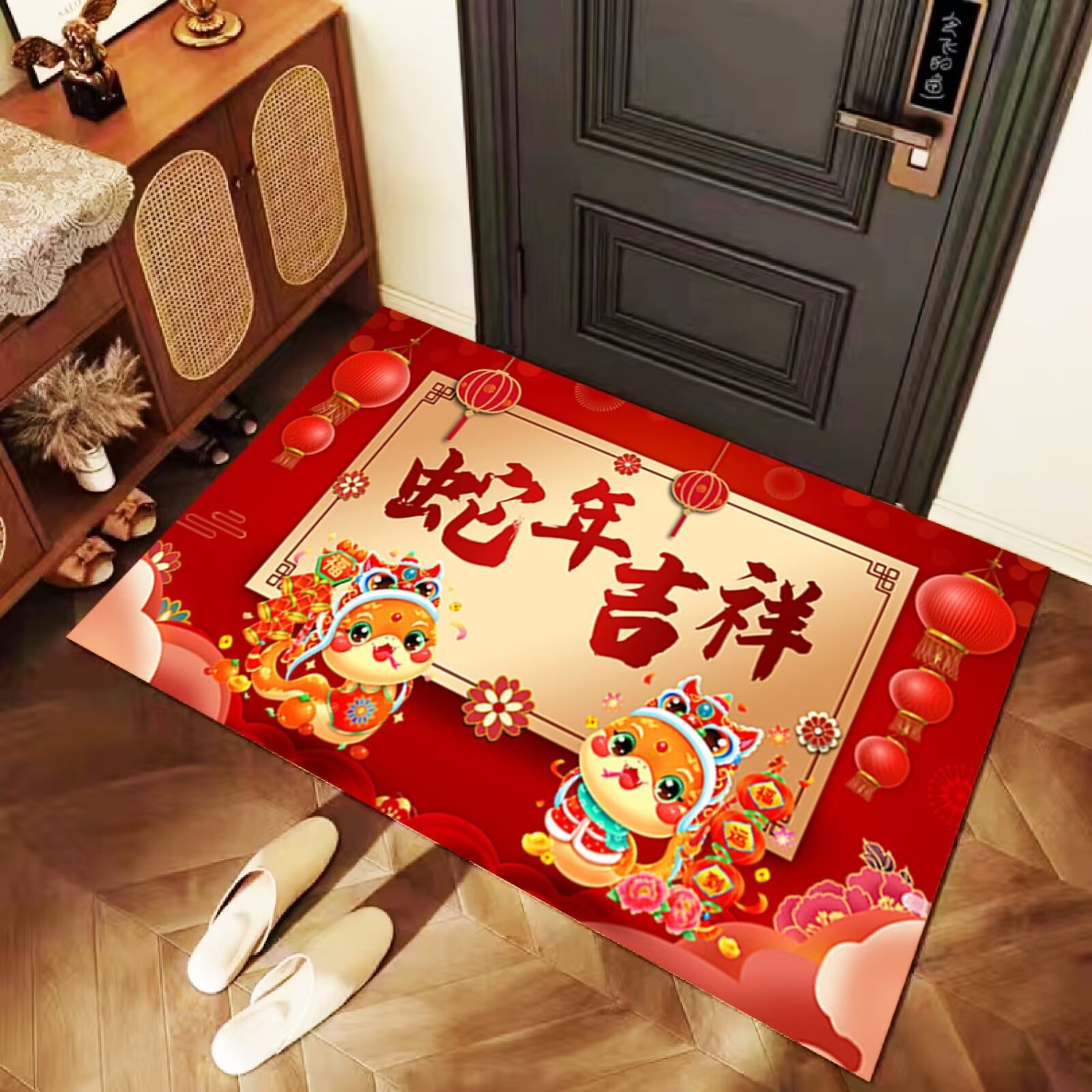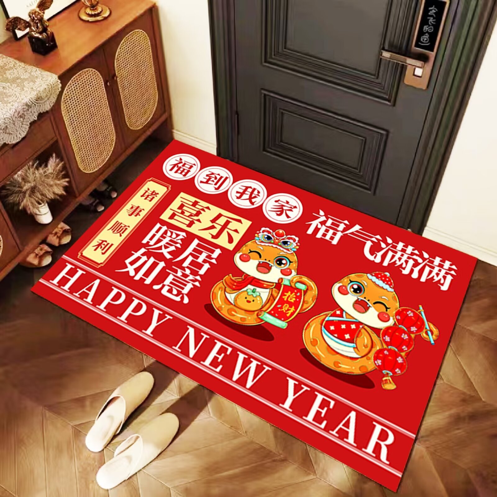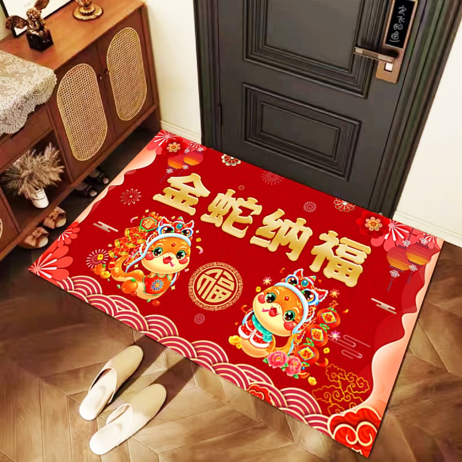 2025 년 뱀 홈 도어 장식 카펫 레드 축제 내마모성 먼지 방지 미끄럼 방지 크리스탈 벨벳 바닥 매트스토어 가기