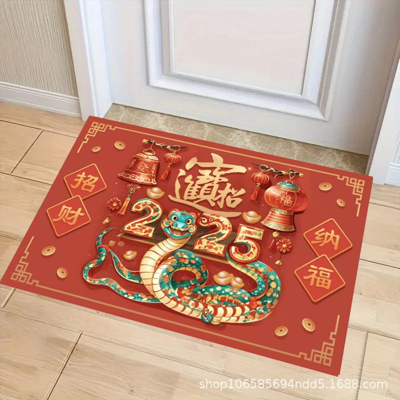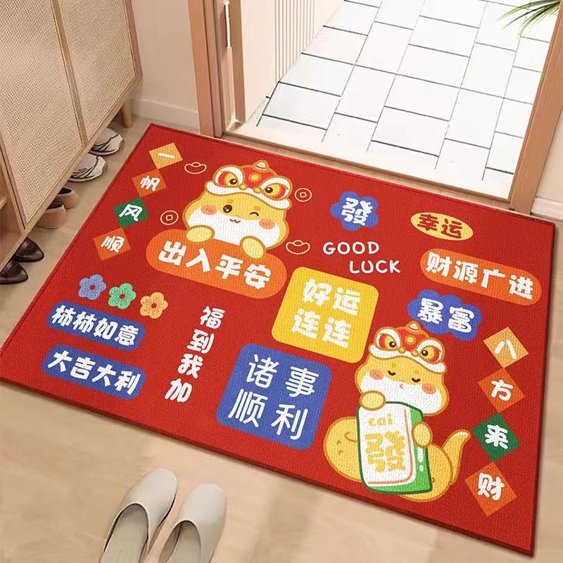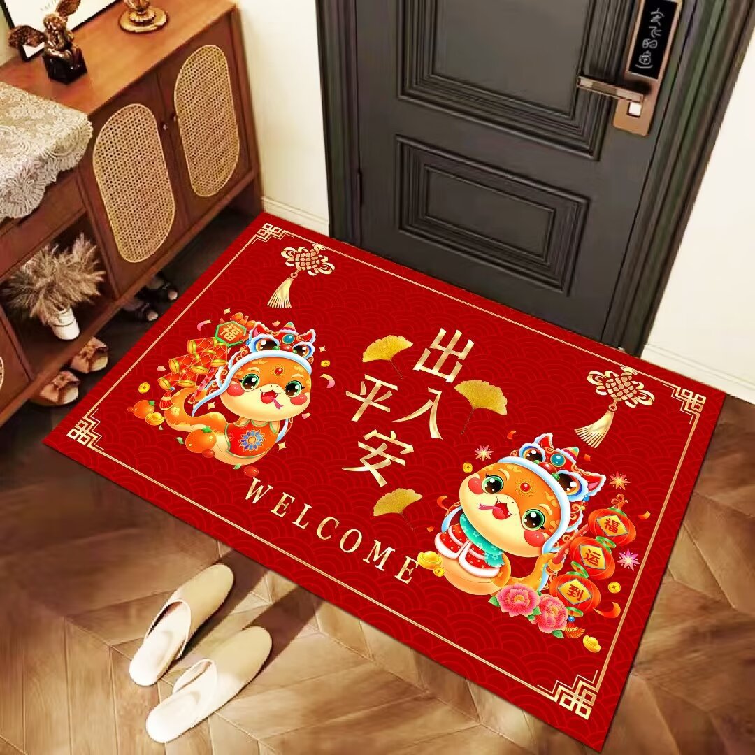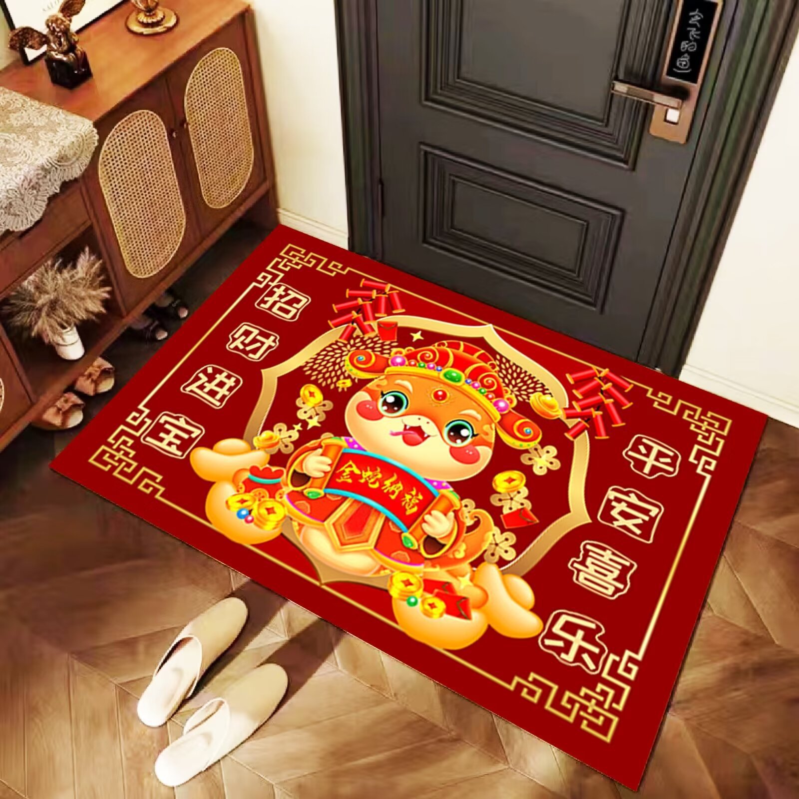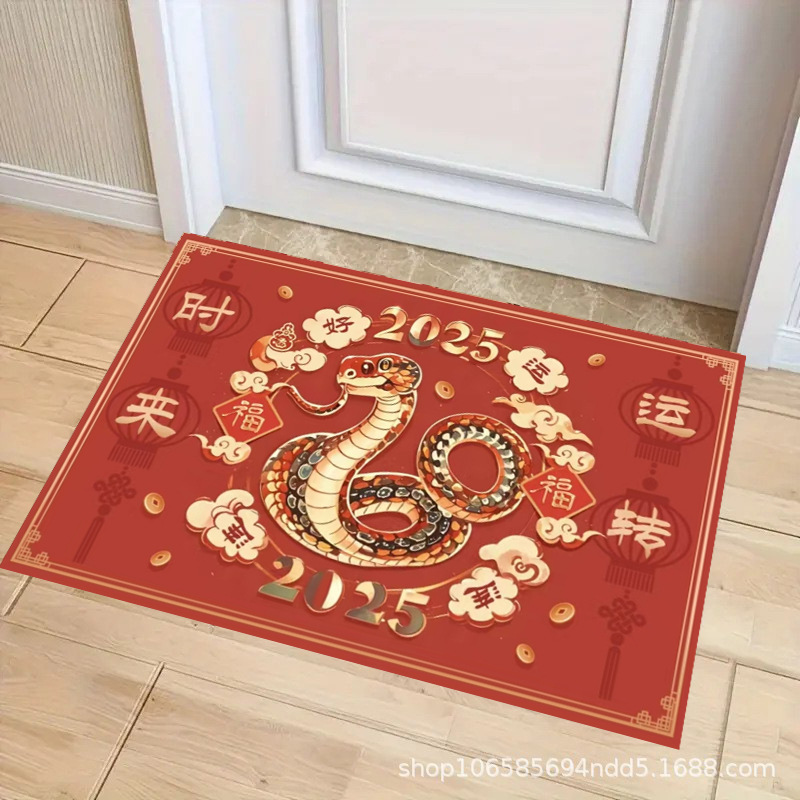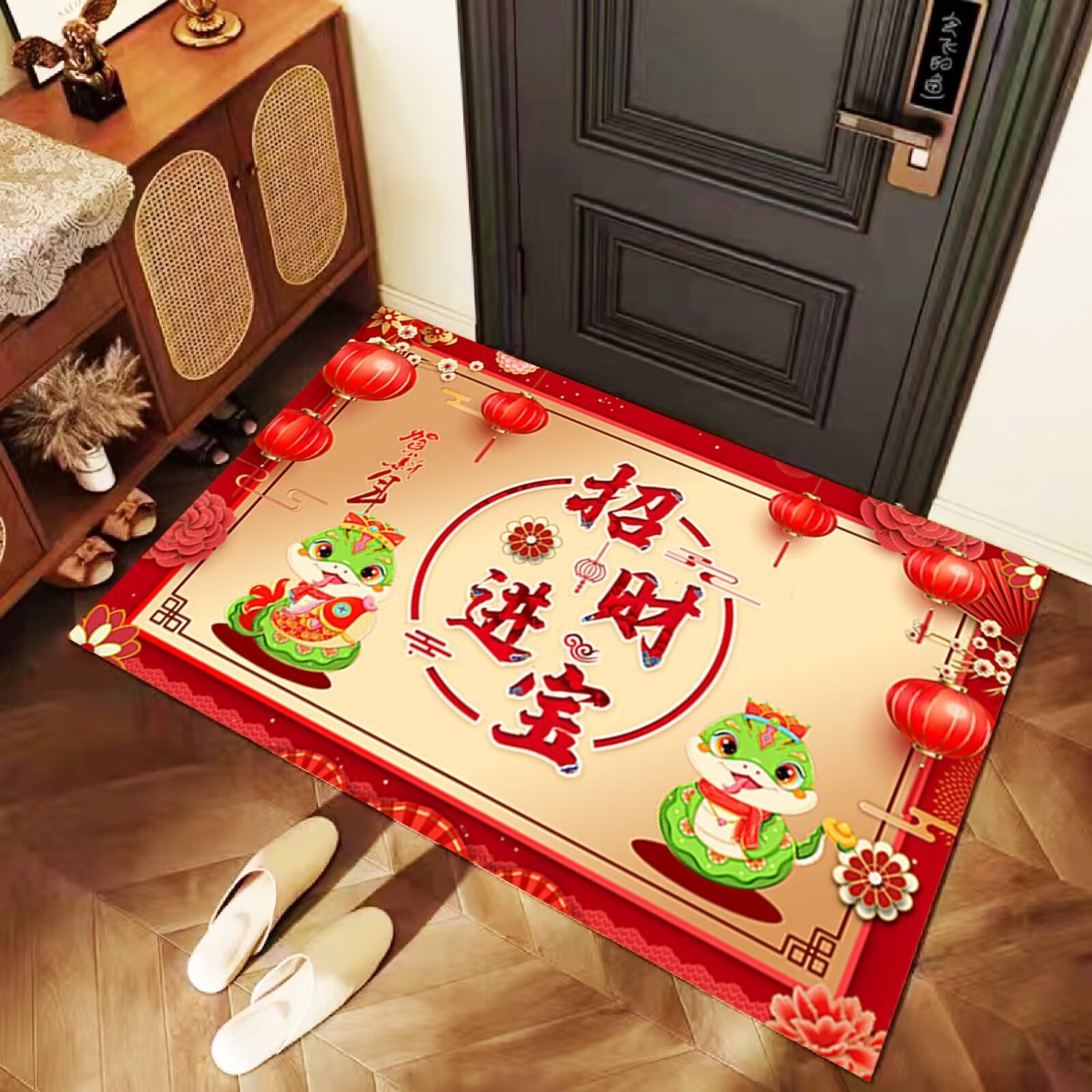 2025 년 뱀 홈 도어 장식 카펫 레드 축제 내마모성 먼지 방지 미끄럼 방지 크리스탈 벨벳 바닥 매트스토어 가기