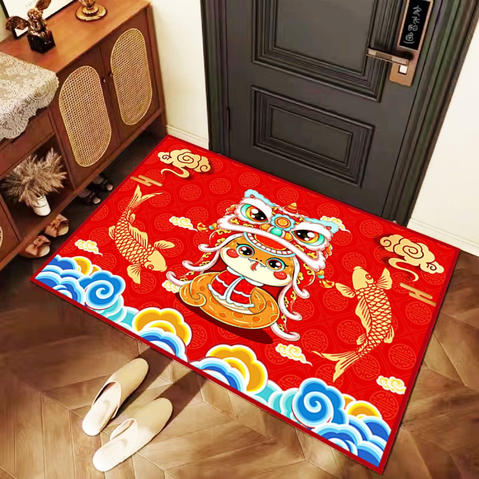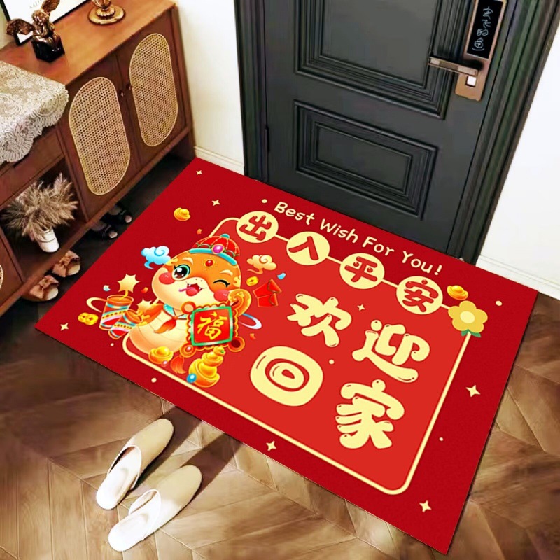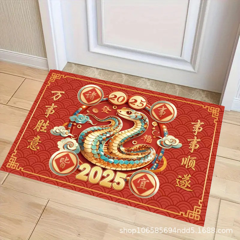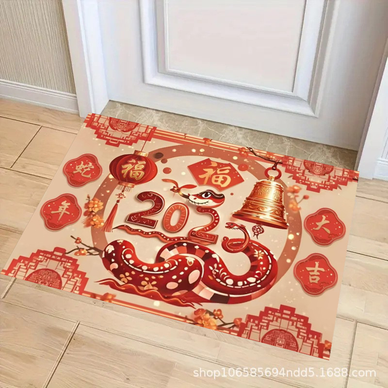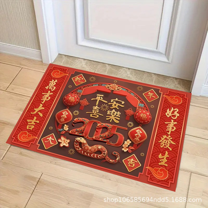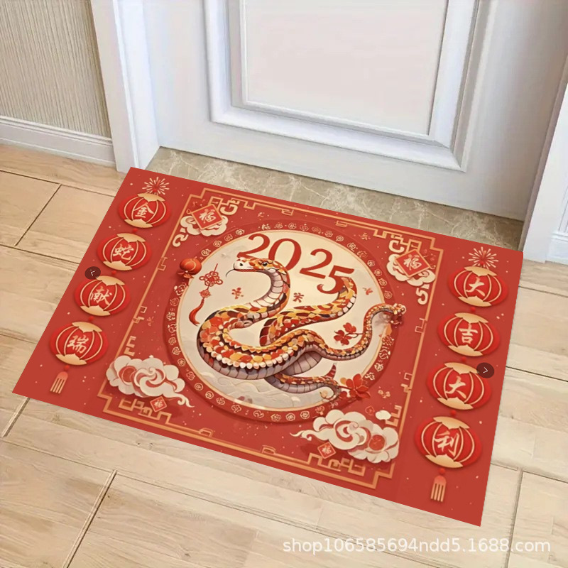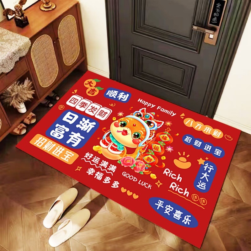 2025 년 뱀 홈 도어 장식 카펫 레드 축제 내마모성 먼지 방지 미끄럼 방지 크리스탈 벨벳 바닥 매트스토어 가기