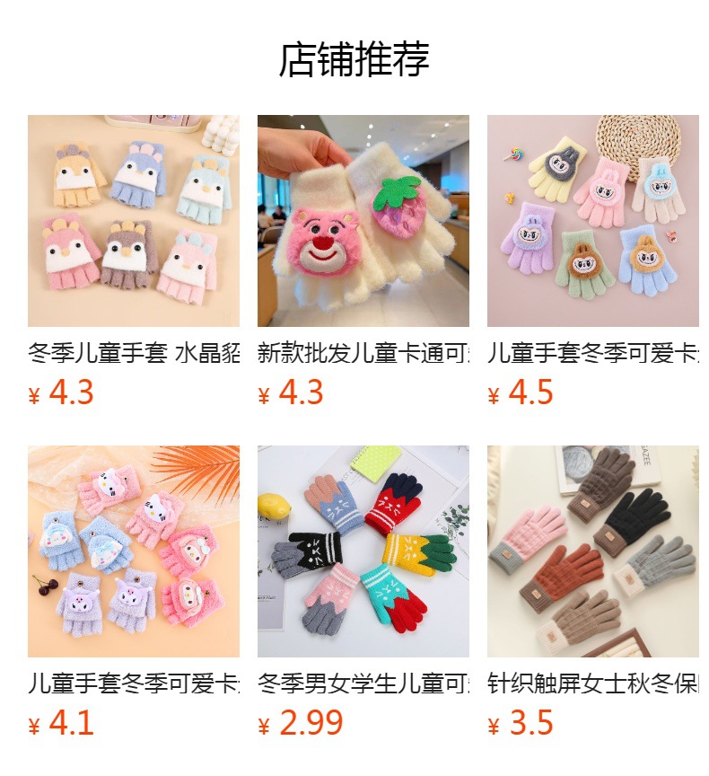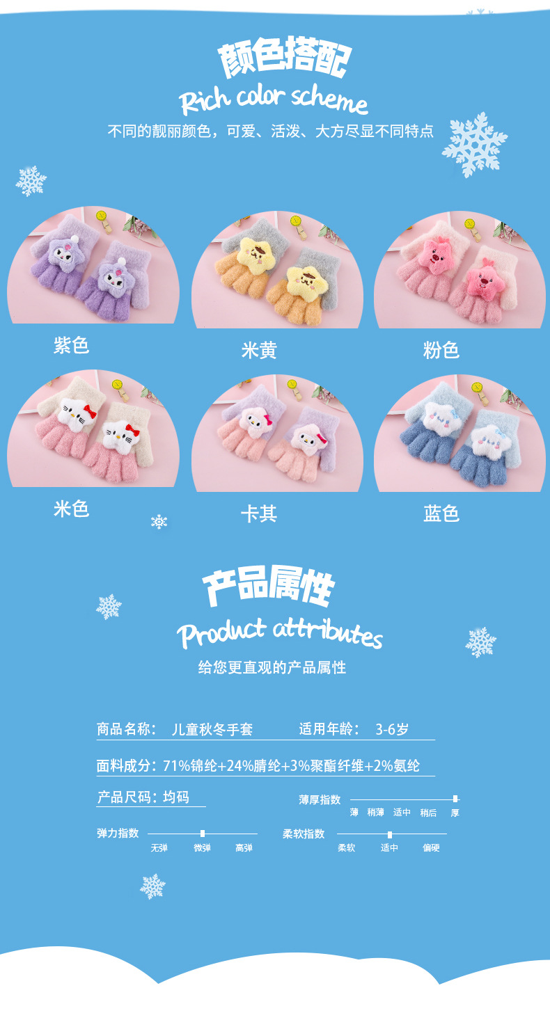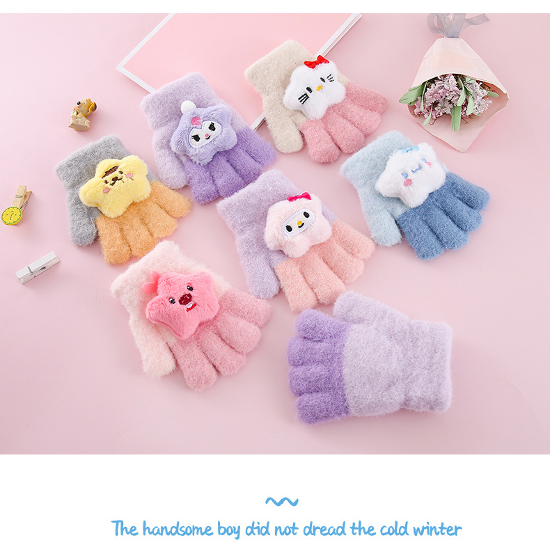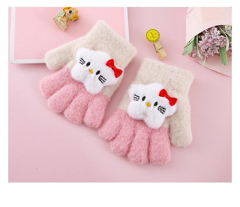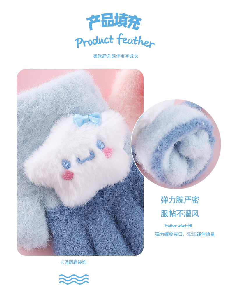 어린이 겨울 귀여운 만화 따뜻한 다섯 손가락 그라디언트 니트 밍크 장갑 소년과 소녀 2-6스토어 가기