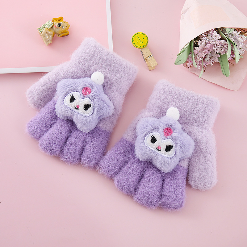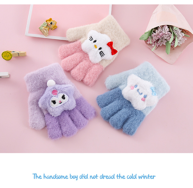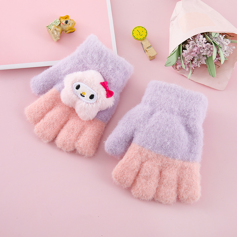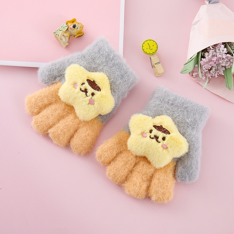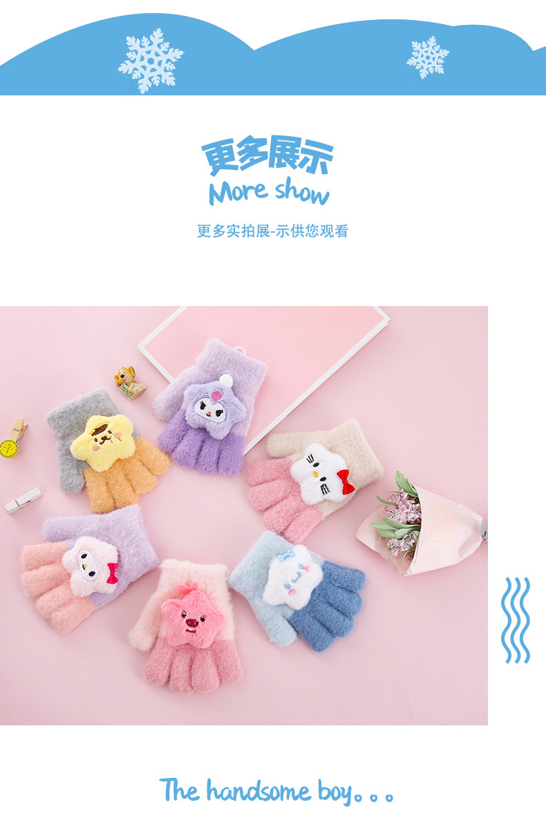 어린이 겨울 귀여운 만화 따뜻한 다섯 손가락 그라디언트 니트 밍크 장갑 소년과 소녀 2-6스토어 가기