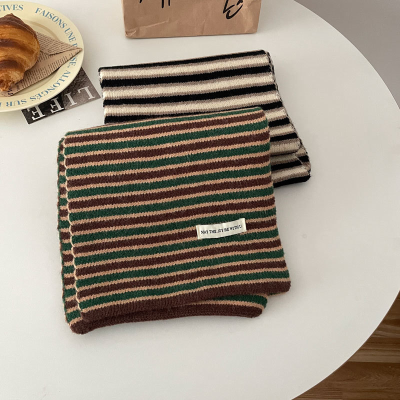 소프트 왁스 니트 양모 줄무늬 스카프 여성 가을 겨울 학생 커플의 짧은 고급 모방 캐시미어 따뜻한 목스토어 가기