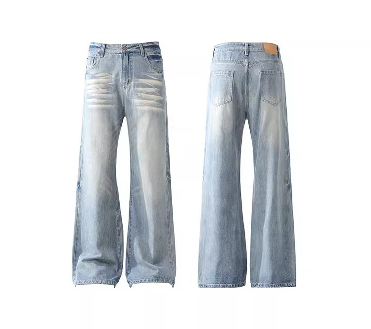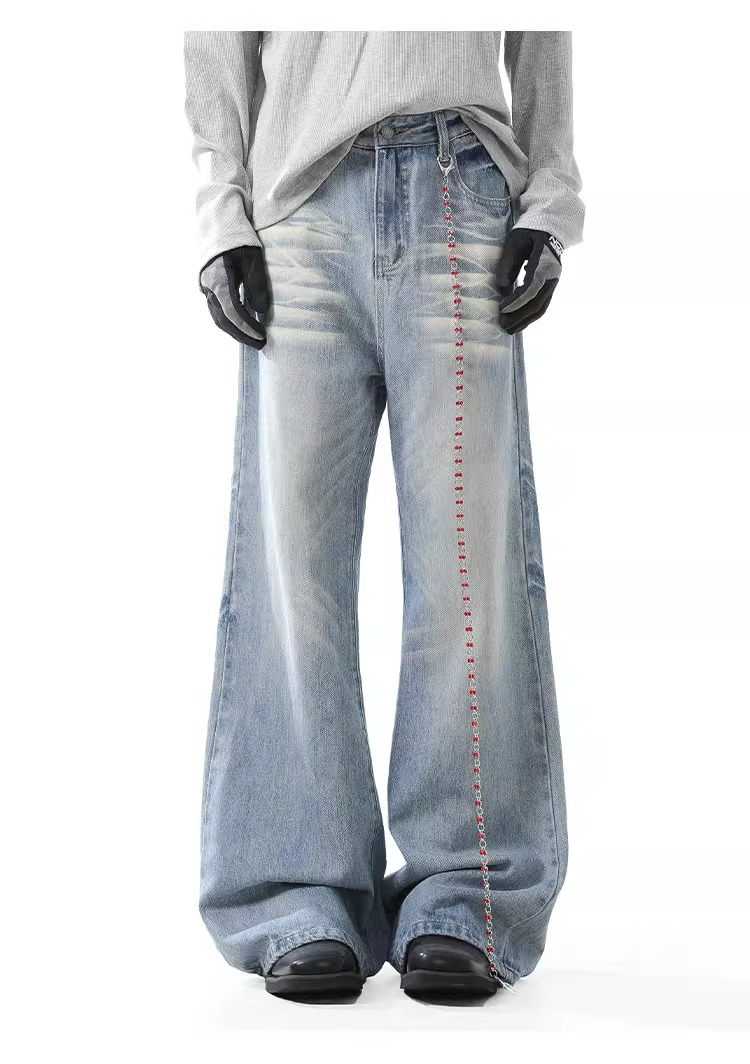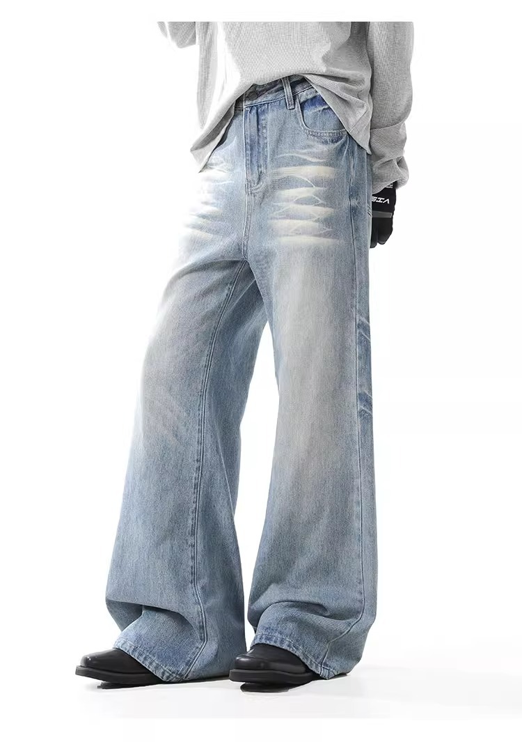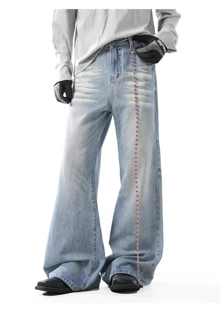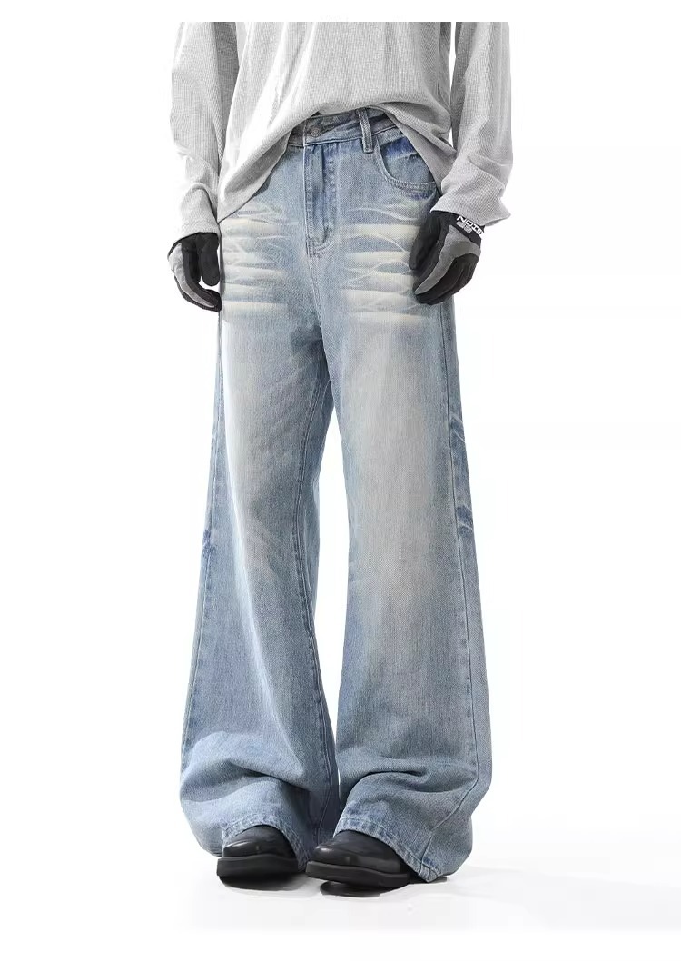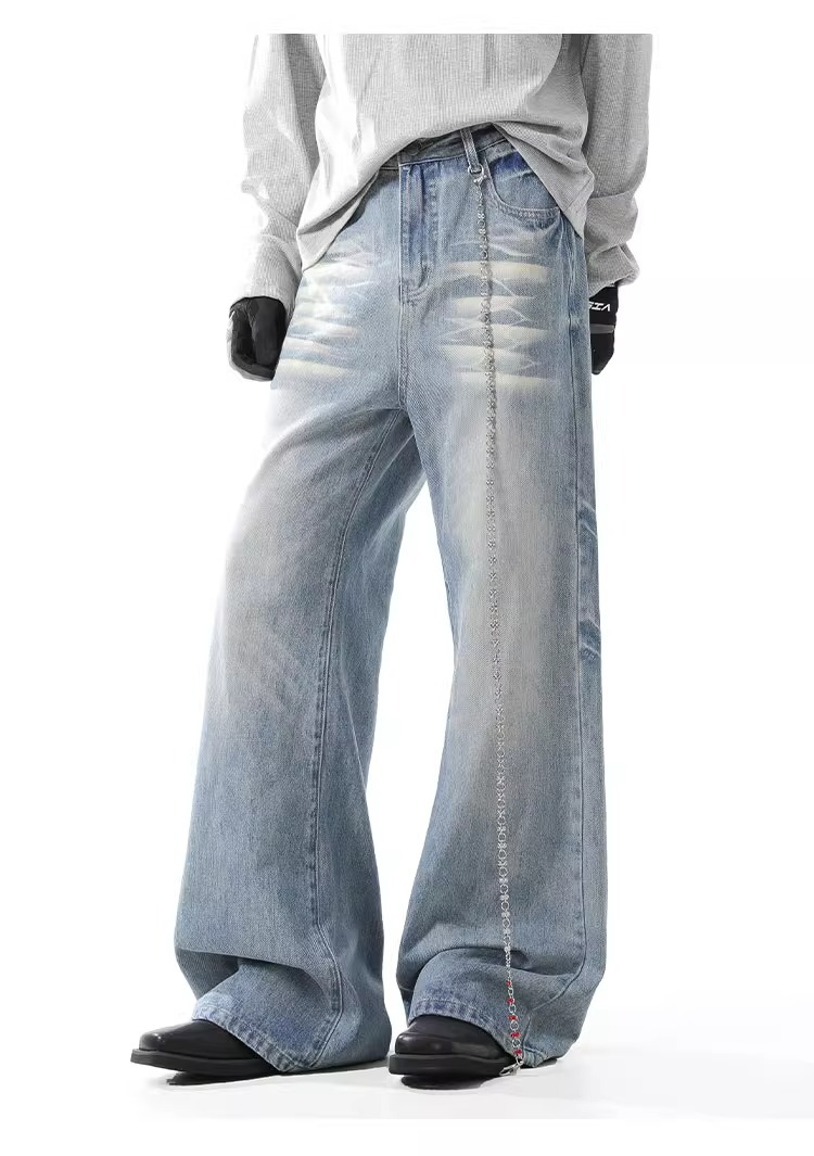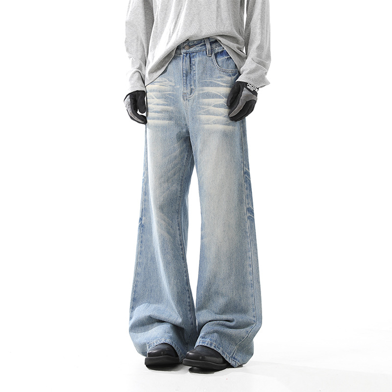 블랑 킨 아메리칸 스타일 빈티지 아이스 블루 청바지 남성 가을/겨울 슬림 클린 핏 긴 바지스토어 가기