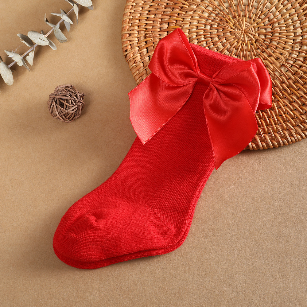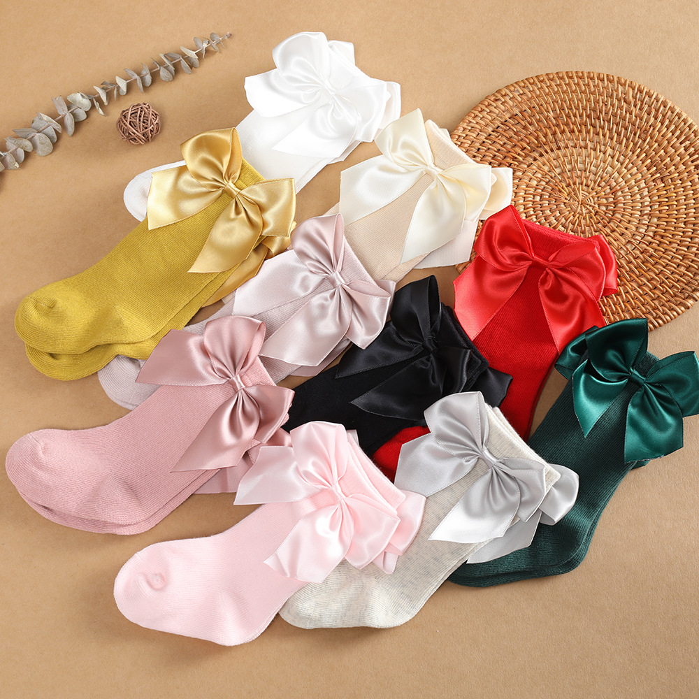 스페인 Ins 어린이 활 중간 길이 스타킹 가을 및 겨울 큰 활 아기 스타킹 일반 높은 높이 스타킹