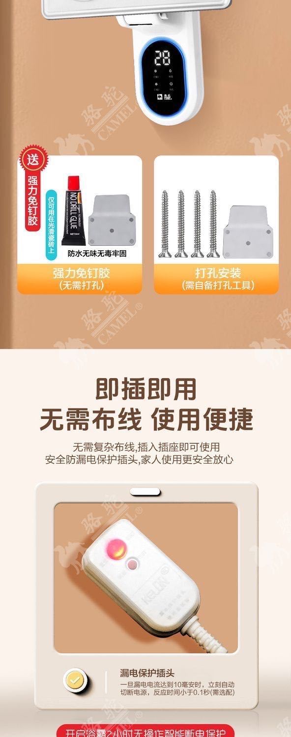 카멜 유바 벽걸이 비-천공 노출 방지 방수 벽 장착 화장실 욕실 벽걸이 형 바람 가열 무료 배송스토어 가기